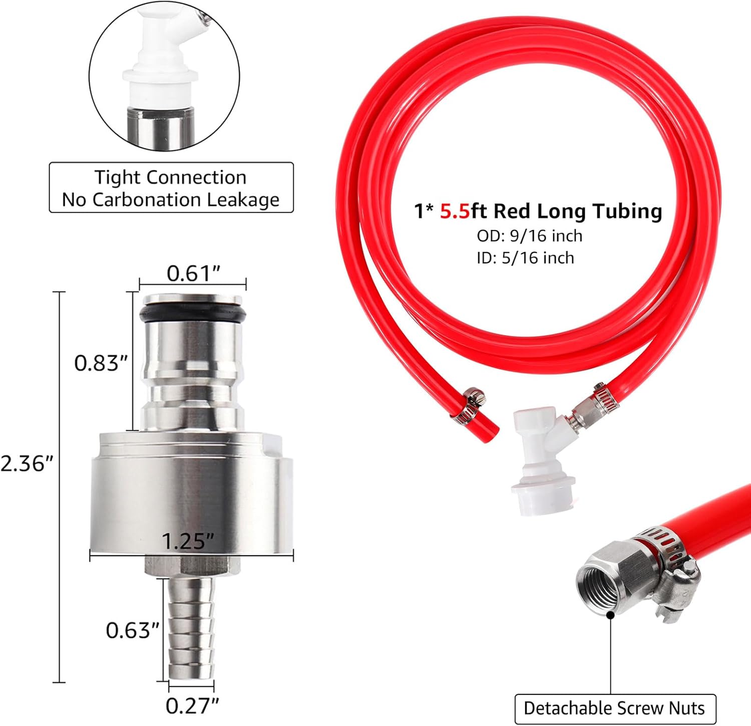 High Pressure CO2 Regulator Dual Gauge Keg Regulator 0-230PSI Output Pressure Regulator for Kegerator - CGA 320 Beer Regulator, 7/16-20 UNF Thread Fittings, Keg Regulator for Beer, Soda 5.5ft 5/16 Co2 Gas Line Tubing for Kegerator Assembly with stainless steel carbonator cap carbonation cap for soda bottle, Ball Gas Lock Draft beer Red Hose kit for Homebrew