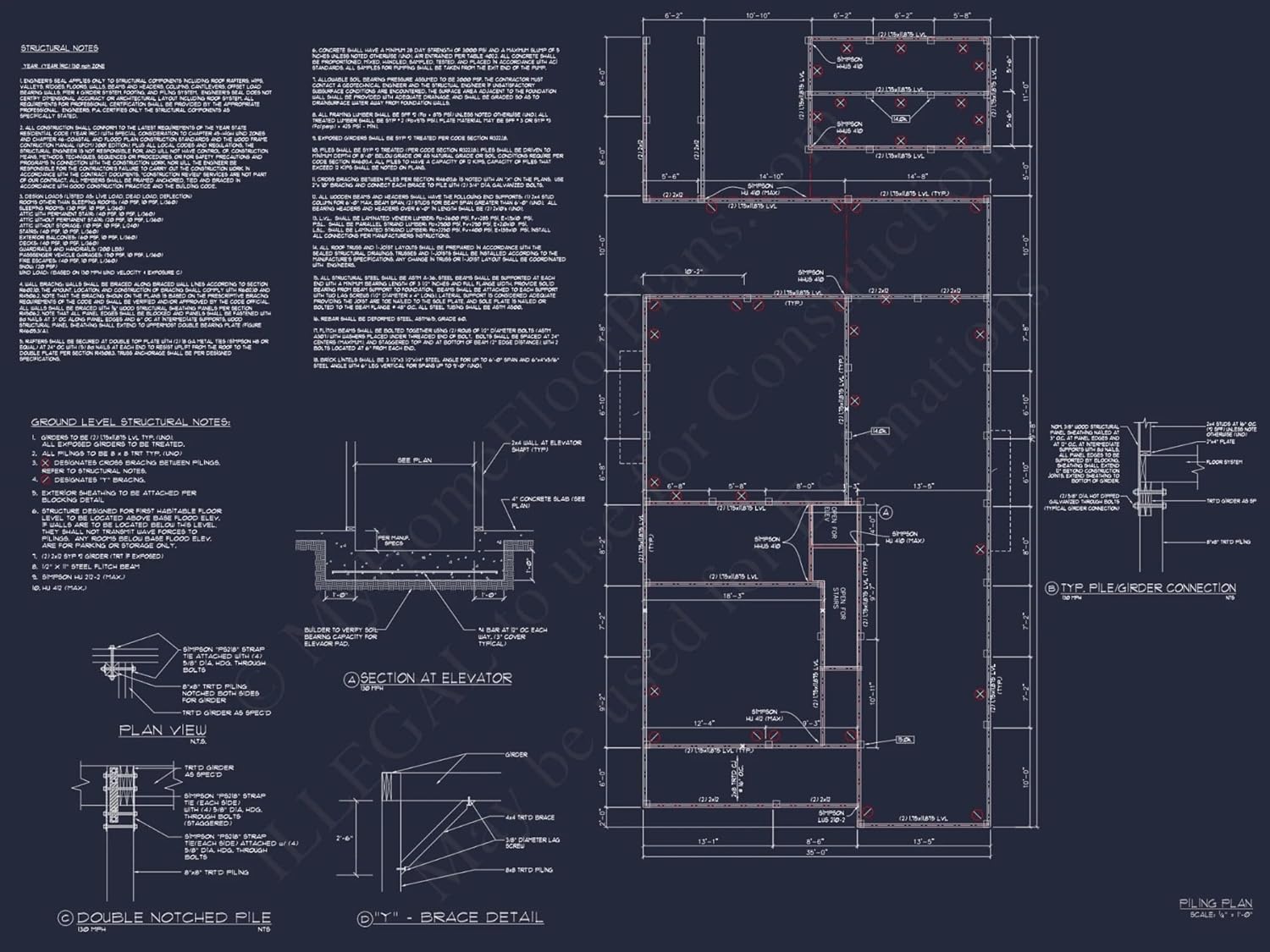 Width: 35′-0″Depth: 45′-8″Htd SF: 3,448Unhtd SF: 1,702Elegant 2-Story Beach House Plan with 6 Bedrooms and CAD BlueprintsExplore this stunning coastal house plan featuring 3,448 heated sq. ft., 6 bedrooms, elevator access, and expansive porches—includes CAD designs and full construction blueprints.This beach house plan offers a perfect mix of coastal charm and everyday comfort. Designed for relaxed living, it features open-concept layouts, smart details, and a breezy architectural flow ideal for oceanside lots.Key Features of the Home PlanLiving Areas - Heated & UnheatedHeated area: 3,448 sq. ft. spread across two beautifully designed stories.Unheated extras: Covered front and rear porches, open decks, balcony, and generous garage/storage space on the lower level.Bedrooms & Bathrooms6 spacious bedrooms including a first-floor Owner Suite with a walk-in closet and private access to outdoor living areas.4 full bathrooms, well-distributed for optimal privacy and convenience.Interior HighlightsElevator access connects both floors for convenience and accessibility.Open floor plan creates a seamless flow between the kitchen, dining, and living areas. View open layouts.Kitchen island plus a walk-in pantry for functional cooking and entertaining.Dedicated laundry rooms on both floors make chores easy, even for large households.Garage & Storage DetailsGarage Bays: 2-car garage on pier foundation with space underneath the home for storage or future expansion.Garage Type: Ground-level pier-style foundation, ideal for flood-prone coastal areas.Storage: Additional storage in closets, a mudroom entryway, and bonus upstairs spaces.Outdoor Living FeaturesExpansive covered front and rear porches, upper-floor balcony, and connected rear deck—perfect for relaxing or entertaining outdoors.Built-in coastal siding and shake details boost curb appeal and withstand sea air.Architectural Style: Coastal Beach