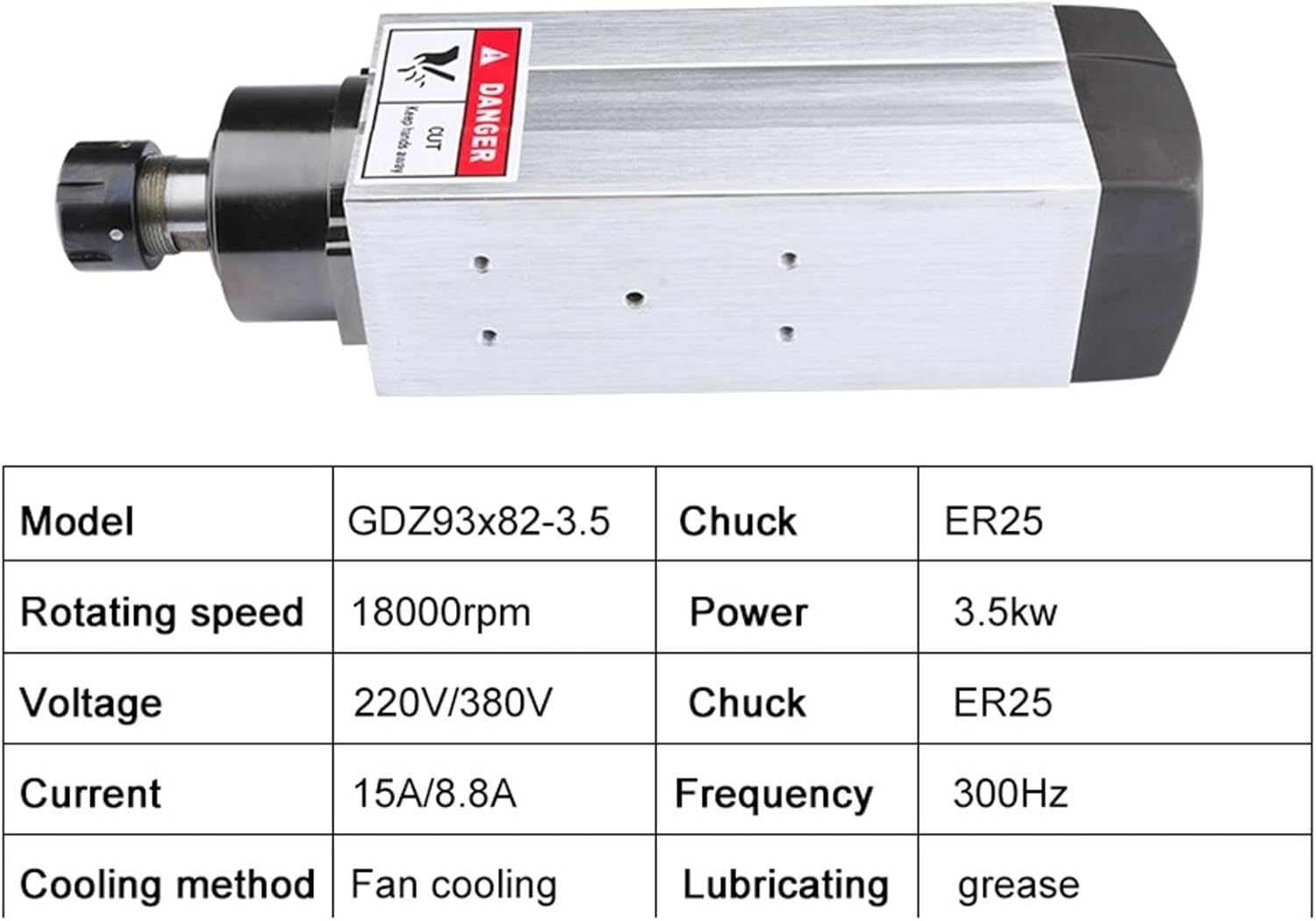 Industrial Motors3.5KW Computerized Numerical Control Square Air-Cooled Motor ER25 Chuck 4 Bearing 220V 380V For Computerized Numerical Control Router Engraving And Milling Machine