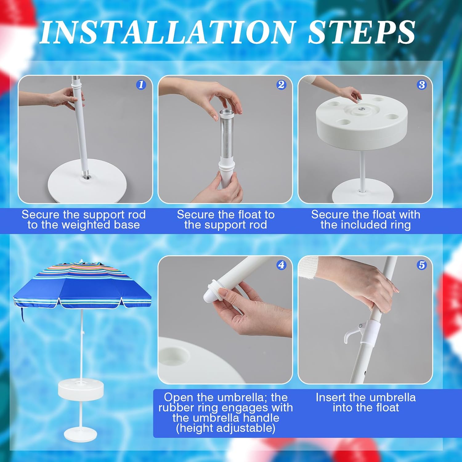 Features: Enjoy Pool Days: whether you're soaking solo or hosting a pool party, this floating umbrella setup helps extend your time in the water by offering much-needed relief from direct sunlight. Fits Any Pool Style: from backyard pools to resort-style setups, this umbrella and table combo blends seamlessly with various outdoor environments, adding both function and a touch of tropical charm. Specifications: Material: polyester, metal, plastic Color: blue stripes Size: 5 ft Package includes: 1 x Floating pool umbrella Notes: Manual measurement, please allow slight errors on size. The color may exist a slight difference due to different screen displays.