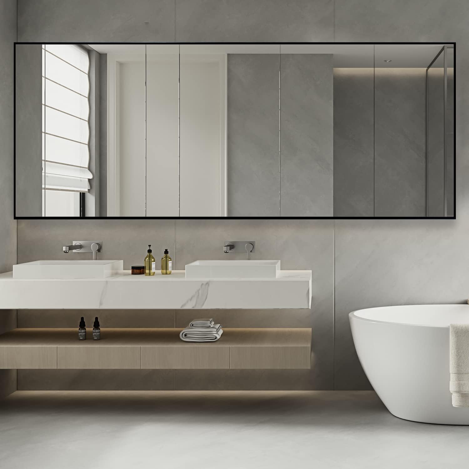 【Large size】 65"x24" full-length mirror allows you to see your whole body. When the U-shaped bracket is opened and the mirror is placed on the ground, a triangular support is formed between the bracket and the mirror, which is very stable and the mirror is free to stand anywhere. 【Metal texture frame】 : Aluminum alloy frame, high quality more texture, no color fading, no odor, safety and environmental protection. 【HD imaging】 Custom silver mirror, the selection of explosion-proof materials, rust proof and explosion-proof, such as accident damage, the mirror glass will not be scattered around, to ensure your safety! 【A variety of purposes】It can be mounted on the wall at an Angle, on a stand anywhere, or mounted vertically on the wall. Suitable for master room, living room, cloakroom, bathroom, dressing room, salon, hotel, Boutique, etc. 【100% Satisfaction Guarantee】Our aim is to provide high quality products at reasonable prices. We assure you of your satisfaction. We have full confidence in our products. If you have any questions or concerns, please do not hesitate to contact us and we will be happy to help you within 24 hours!