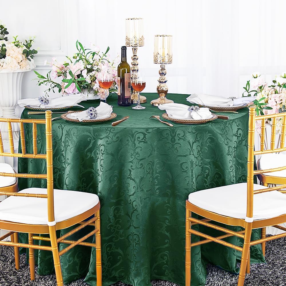 Round Versailles Chopin Jacquard Damask polyester tablecloths are made from a high quality heavy duty seamless Jacquard Damask polyester material with a beautiful hemmed edge giving a delicate and elegant appearance to the overall look of the table. Our seamless Round damask jacquard Polyester tablecloths are available in different colors and available in size 90" round, 108" round, 120" round, 132" round. Our heavy duty jacquard damask polyester table linens are perfect for restaurants, catering service, banquet halls, hotels and wedding receptions.