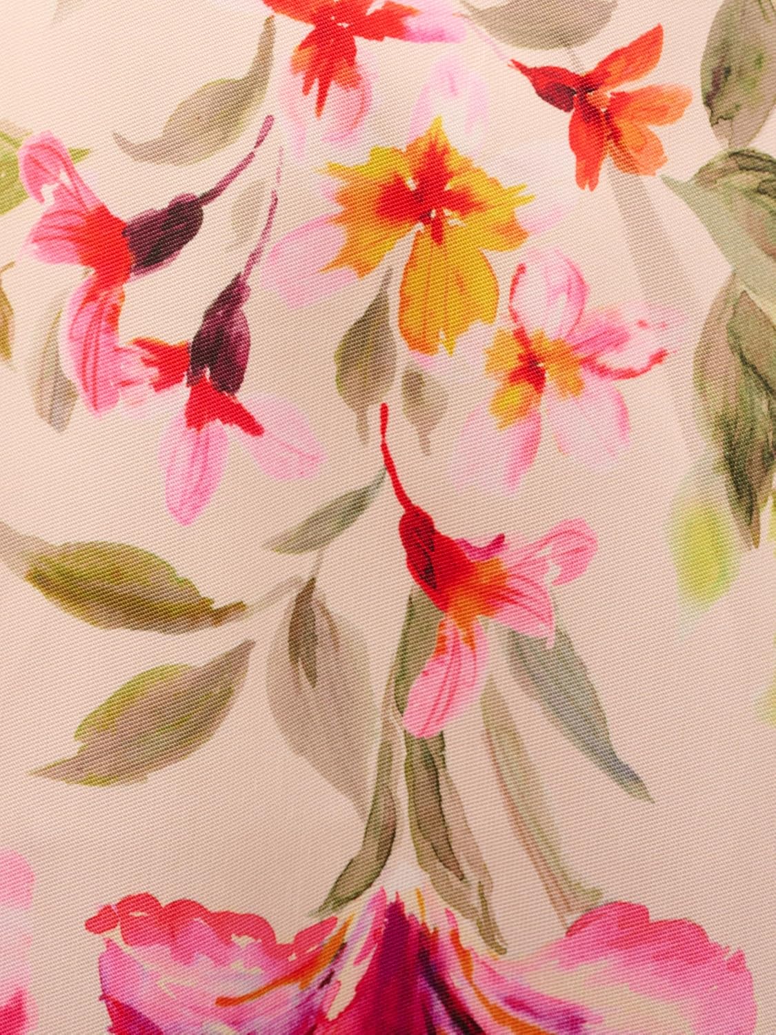 Capture timeless elegance in this floral printed Mikado midi dress. Designed with a structured fit and flare silhouette, it features a full pleated skirt for a retro inspired moment. The cascading floral print adds a soft, romantic touch, flowing effortlessly from the bodice down to the hemline. A square neckline and matching square back create a refined look, while corset style vertical seams sculpt your silhouette. Finished with a back zipper closure for a seamless fit, this dress is perfect for garden parties, weddings, and special occasions.
