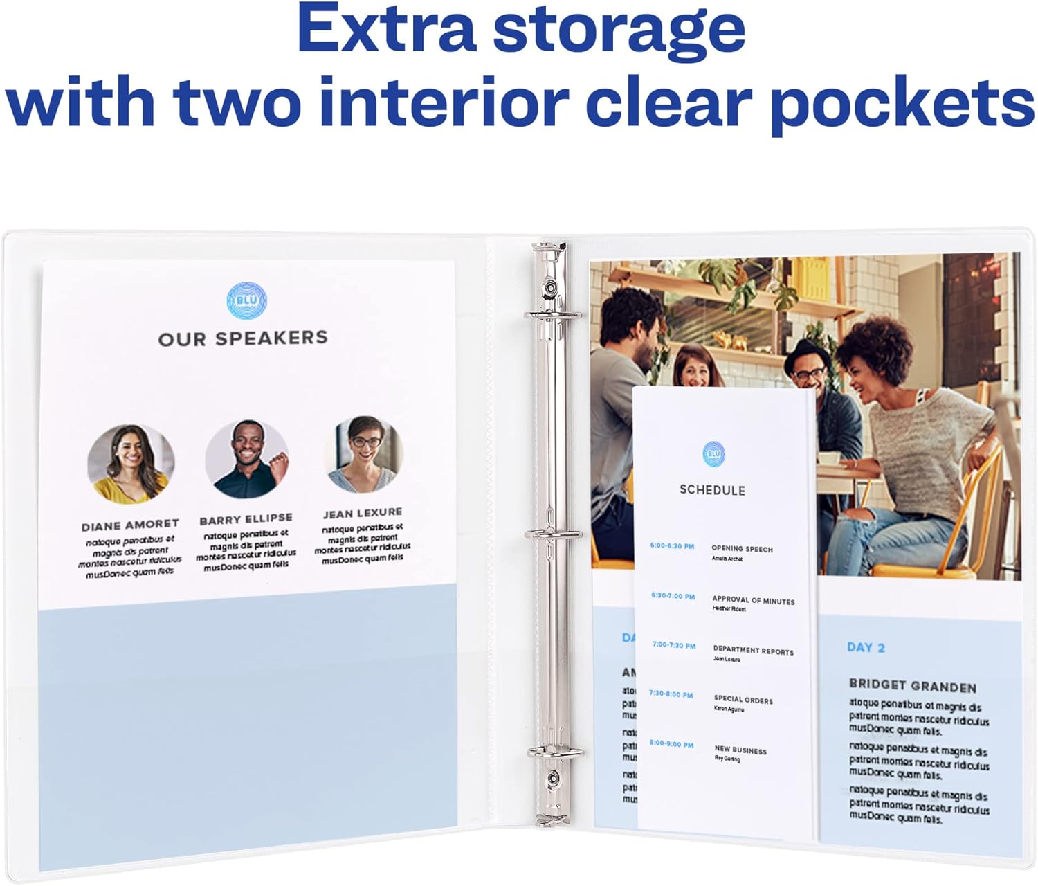 The Avery Durable View 3 Ring Binder is an essential for home organization, office needs, or school supplies. This set of 4 binders is great for those seeking binders capable of handling extensive paperwork. Each binder features 0.5-inch slant rings, accommodating up to 135 sheets, making them ideal for a variety of tasks, whether as a wedding planning book and organizer or a school organizer. The tear-resistant DuraHinge spine and DuraEdge split-resistant edges offer durability beyond standard three ring binders, delivering longevity and protection. Customizing these binders is a breeze with a clear view cover, allowing you to personalize the spine, front, and back cover for easy identification. For added convenience, each 0.5 inch binder includes two interior clear pockets made from nonstick PVC-free material, protecting your documents from ink smudges. Utilize the binder pockets and plastic pockets for paper 8.5x11 to keep your pages pristine and organized. Whether using them as a wedding binder or for storing important schoolwork, these Avery binders deliver versatility and strength. Ideal as a 3 ring binder option for home, school, or office use, these binders are a great choice when you need reliable and stylish organization.