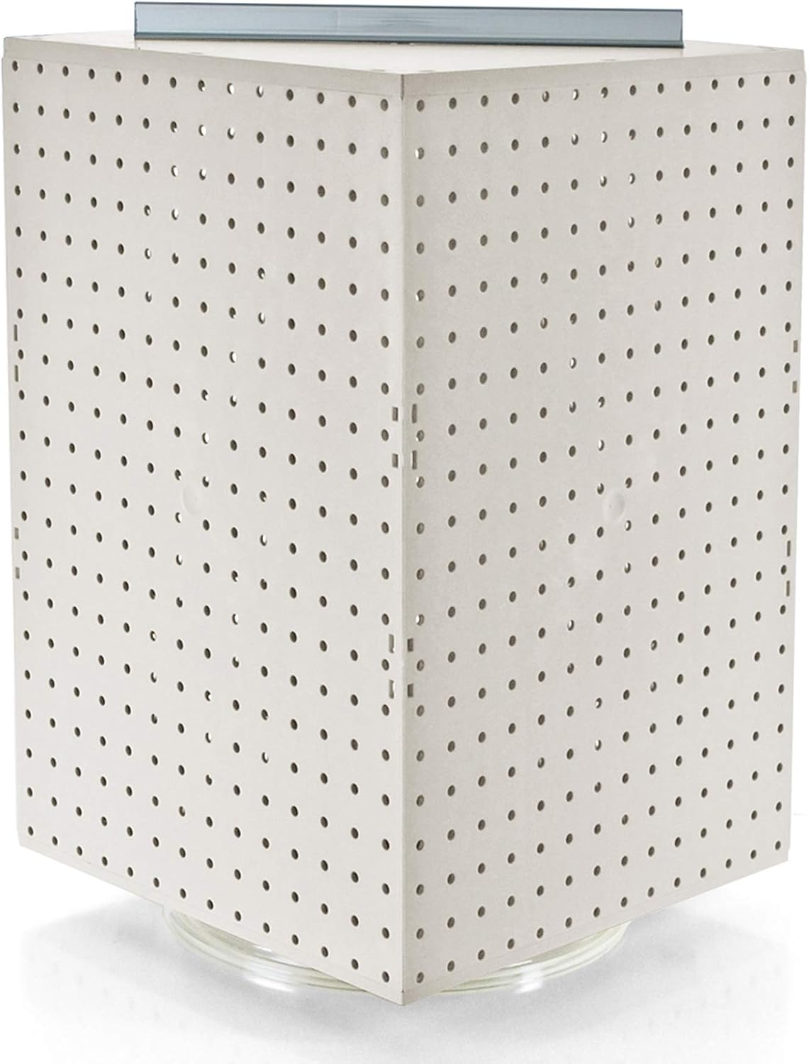 Azar’s interlocking four-sided pegboard display on a turntable measure 14 inch W by 14 inch D by 20 inch H. The rotating display stand is attached to a 12-inch diameter revolving clear plastic base. Once assembled, the turntable display’s height is 21 inch. A sign holder strip is included to hold your own graphic.Azar’s retail display racks help to maximize your sales. With our small pegboard, product presentation and visual appeal help to contribute to your bottom line.Our display turntable is easy to assemble and no tools are required. Simply snap the plastic pegboard into place, add some pegboard hooks (holes are 1 inch on center), add your products and you’re ready to start selling. And with the revolving base your customers get even better accessibility.Azar’s interlocking revolving retail display stand for counter is easy to keep clean and will look fantastic for many years to come. The spinning organizer works great with Azar’s own line of pegboard hooks and accessories. Note that hooks are sold separately.Add hooks to your pegboard display to hang your products. To display sunglasses use sunglass holders. For loose items, add pegboard bins or buckets. You can successfully create a beautiful custom display or planogram with any of Azar’s stock displays and accessories.Click Add To Cart to buy your 4-sided rotating retail display carousel stand today!Product Details:Part Number: 701414-PNKItem Weight: 10.36 poundsProduct Dimensions: 14 x 14 x 20 inchesBase Dimensions: 12-inch diameterColor: Pink Translucent Manufacturer: Azar Displays