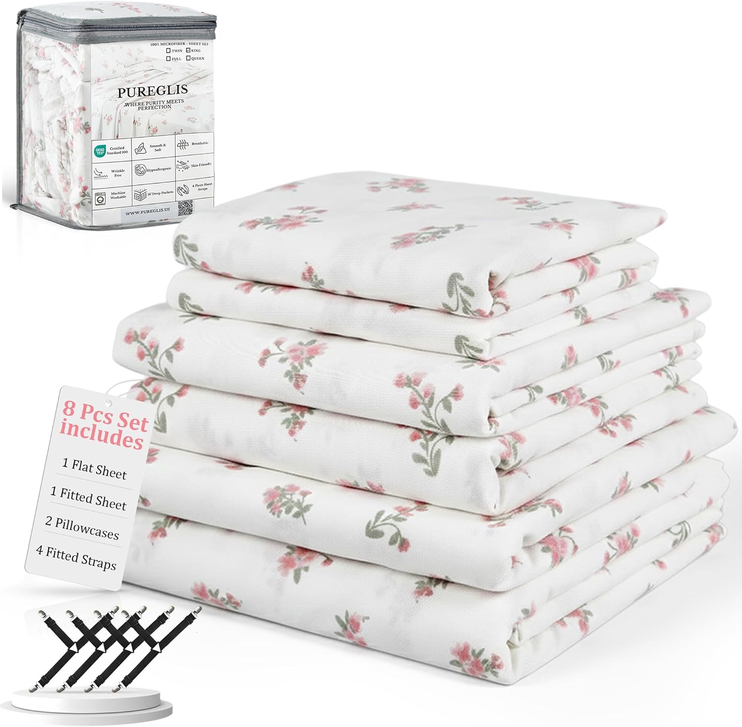 | Included Components | Fitted Sheet, Fitted Sheet Straps, Flat Sheet, Pillowcase |