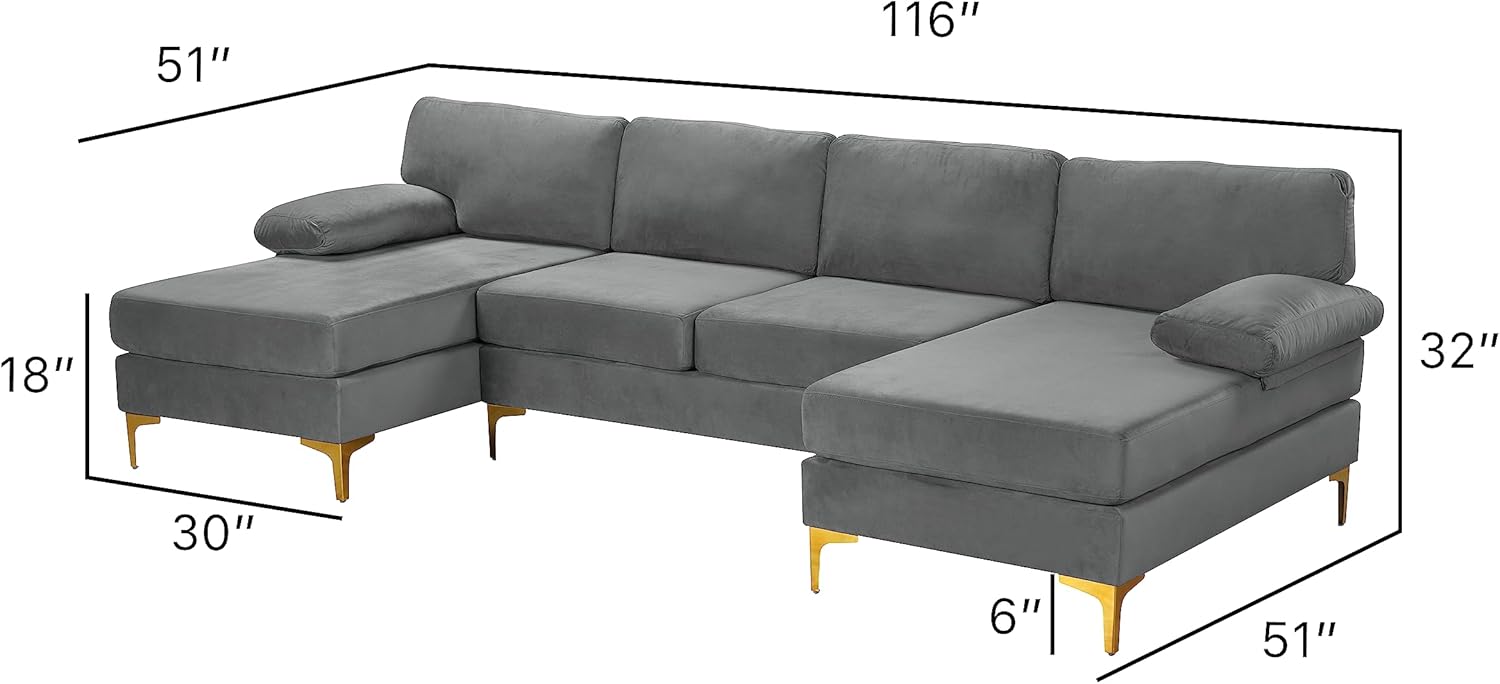 | Item Type Name | Large Velvet Fabric Sectional Sofa, L-Shape Couch with Extra Wide Chaise Lounge |