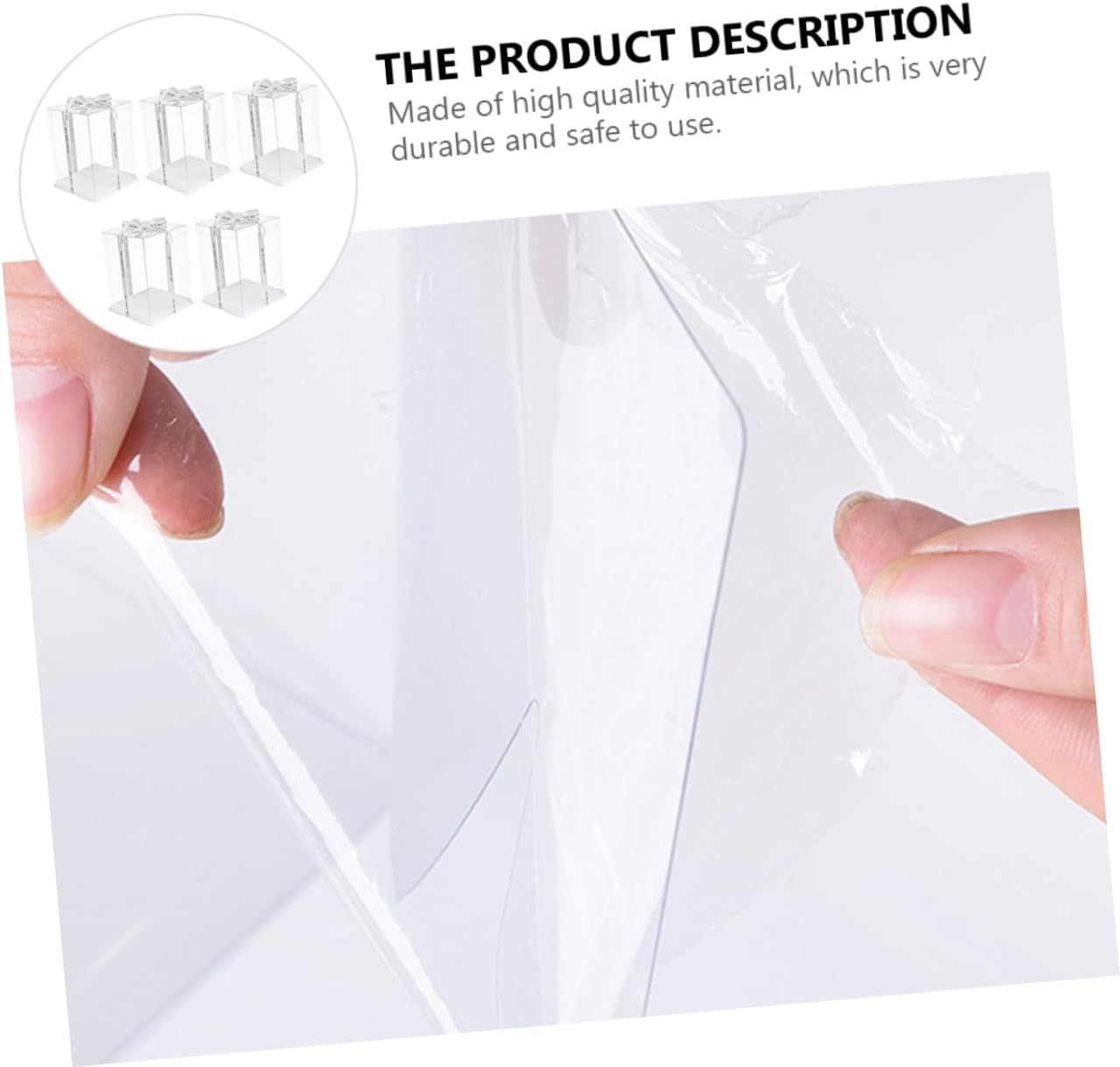 Package List 5 x cake packaging boxes Features - Material: Food grade white card, PET Cake Storage Box. - Applicable: for 8 inch cake Food Packaging Boxes. - Size: 26.00X26.00X25.00cm/10.22X10.22X9.82inch Baking Cake Container. - Color: White ( color for ribbon) Cake Storage Container. - Simple and design, and easy to use and carry Cake Packing Box. - They can be used for shower, birthday party or Cake Wrapping Case. - Transparent design can show off your cakes inside without exposing to the Storage Container. - , environmental protection, and Cake Carrier. - Featuring reusable, it can be used for times and easy to clean Cake Container.Goods DescriptionFood Packaging Boxes This is a cake box.Cake Container With the ribbon handheld design, this cake box is very convenient to carry.Cake Packing Case This cake box can help you to pack your cakes and transparent design allows you see the cake directly.Baking Cake Container material, and to use.Transparent Cake Boxes Sealing design can prevent leakage