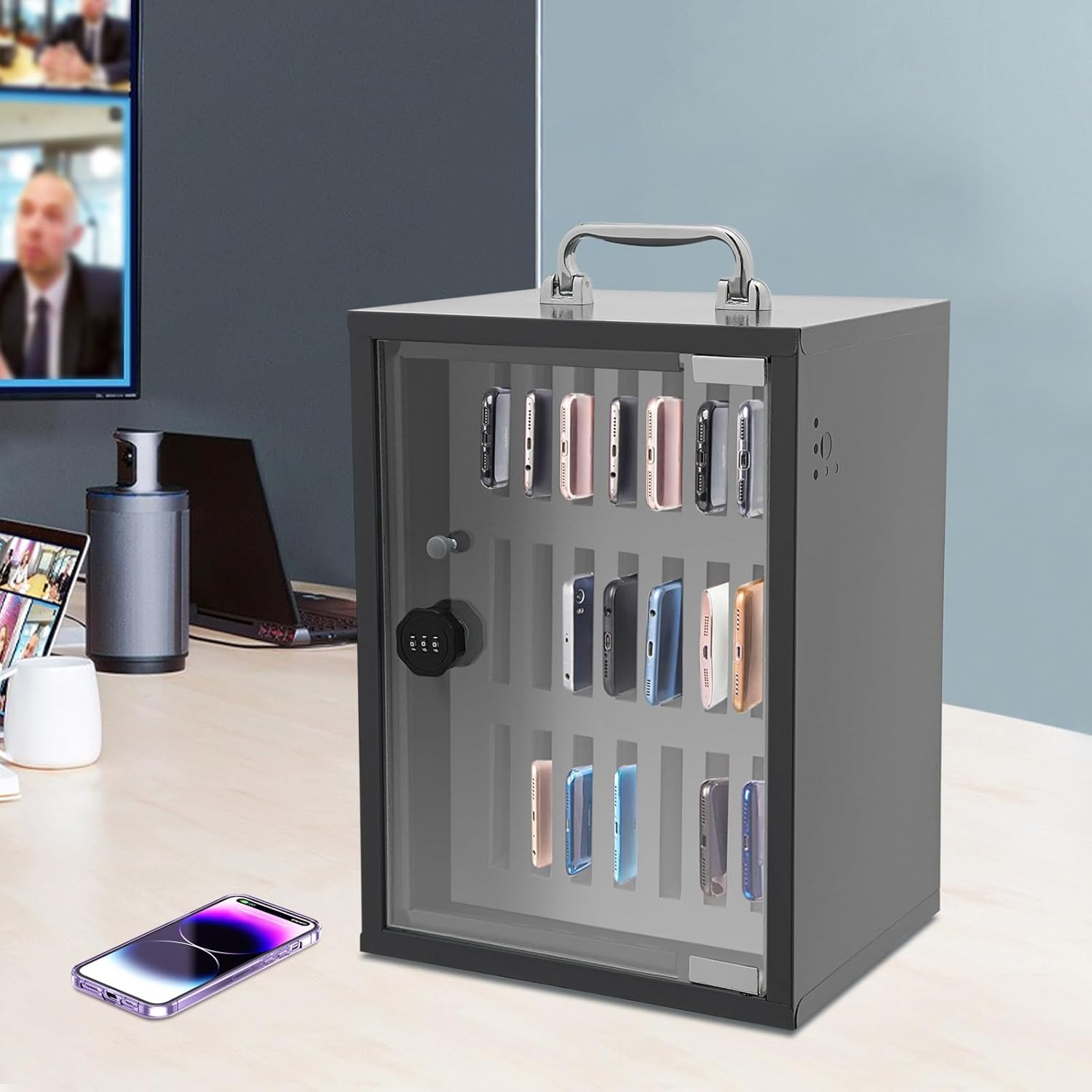 FeaturesEnhance Focus: Our mobile phone locker is designed to minimize distractions by securely storing phones and wallets during classes, meetings, and sports events. This promotes a focused environment where everyone can engage fully and perform at their best.Hassle-Free Installation: Our mobile phone locker comes ready to use with pre-drilled holes and included screws, allowing you to easily mount it on the wall or place it on your desk without any assembly required. Enjoy convenience and efficiency right from the start.Compact Design: Measuring just 12.32*7.28*10.83 inches, this mobile phone locker is perfect for tight spaces. Its sleek design fits seamlessly on desks or walls, ensuring that your workspace remains organized and clutter-free without hindering productivity.Password Management Made Easy: Changing the combination is straightforward. Just open the locker, set it to the initial code of 000, and follow a simple process to customize your password. This ensures that your belongings are secure while being easy to access for authorized users.SpecificationsStyle: ModernShape: RectangularColor: ClearMaterial: AcrylicSurface Treatment: PolishedMount Type: Wall Mount or TabletopAssembly Required: NoThickness: 3.5 mmNumber of Compartments: 15Lock Type: Combination LockWeight: 4.1 kgNet Weight: 3.8 kgProduct Size: 31.3*18.5*27.5 cmEach Compartment Size: 5*10*18 cmPackage Size: 39*26*35 cmPackage Includes1 Mobile Phone LockerAll necessary accessories for installation