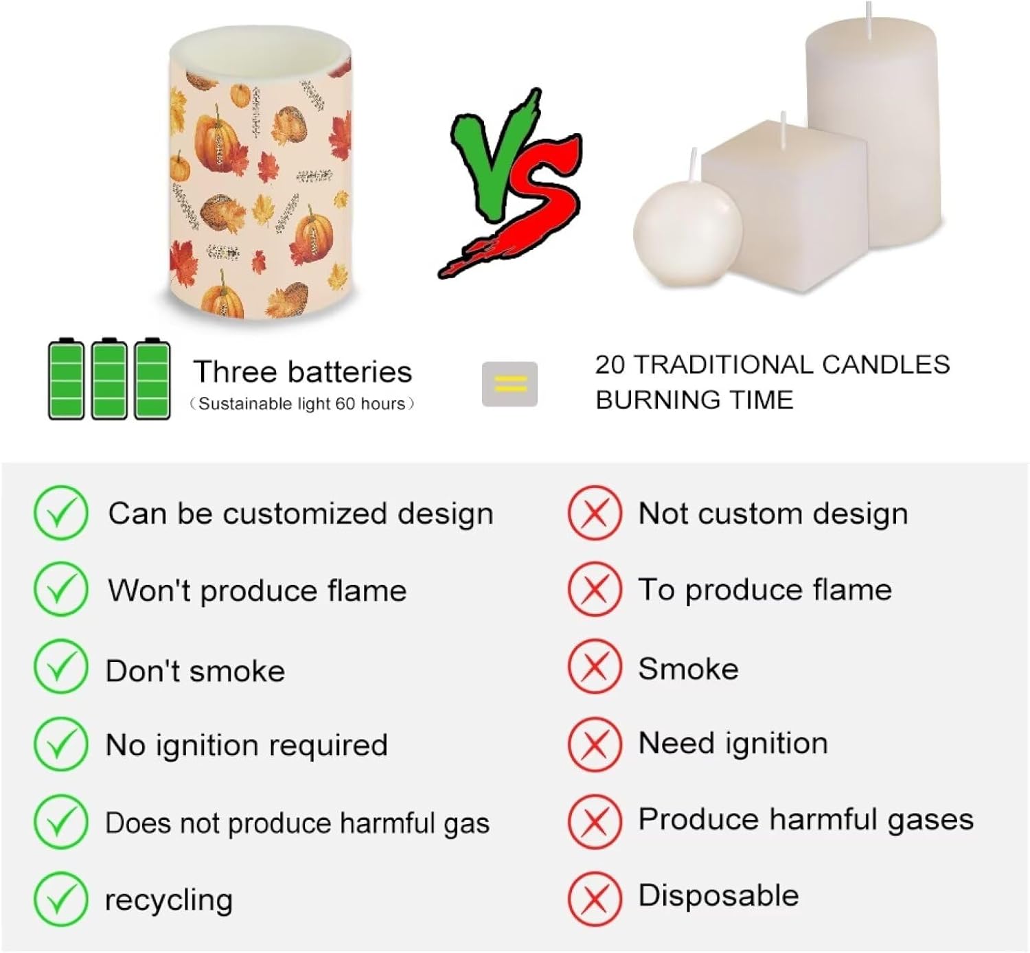 Candles Sets(not battery include) Material:Premium frosted plastic. Color: ivory color Candles comes in 4 different size: --Diameter 7.5cm/3inch Height 7.3cm/2.9inch --Diameter 7.5cm/3inch Height 9.7cm/3.8inch --Diameter 7.5cm/3inch Height 12cm/4.7inch --Diameter 7.5cm/3inch Height 14.5cm/5.7inch Features: --with remote control,12 colors for you choose,have 4-hour or 8-hour timing mode --warm yellow tealights with miniature flicker --turn on/ off manually. --battery operated by 3 x AAA batteries. (Batteries not Included) --these flameless candles set is long lasting,buy them once, enjoy them for years to come! --suit for any spaces,any weather,indoor or outdoor. --4 pieces battery candles,create a romantic atmosphere and sparks interest for wedding,parties,home,birthday,festival and other occasions. without the worry of fire hazard, wax melting or allergic scent, warmer and peaceful atmosphere will make you enjoy your event.You will love it. Using Tips: 1.When the battery is too weak for normal power supply, your flameless candle will dim light, please turn off the candle and replace the battery. 2.Do not mix old or new batteries. 3.when not in use for a long time, please remove the battery from the LED candle. Note: 1.Due to the different camera or lighting environment, please allow a little chromatic aberration. 2.Due to different measurement methods, please allow an error of 1-3mm. Thank you! 3.Thank you for your business! If you have any questions, please don't hesitate to contact us directly.