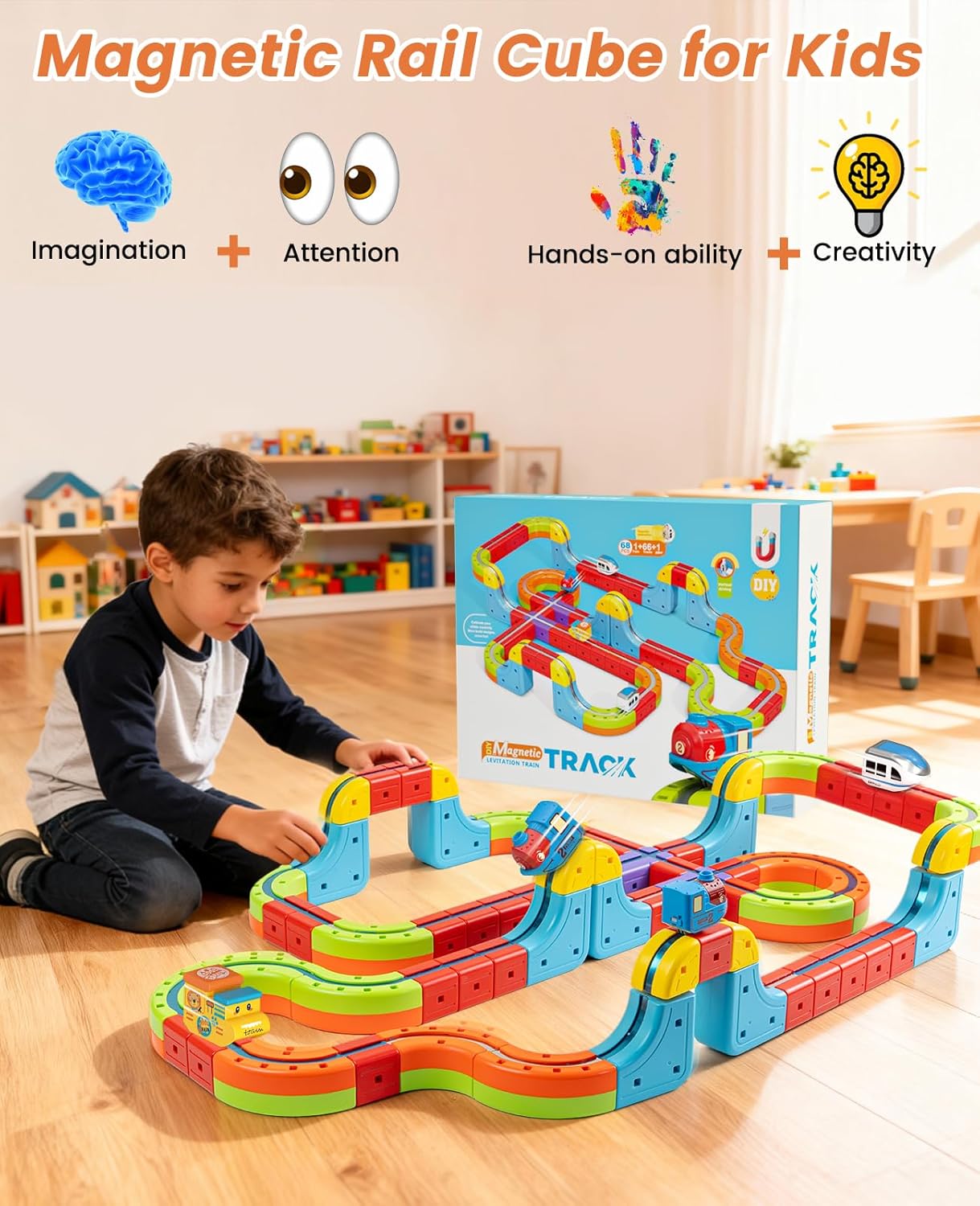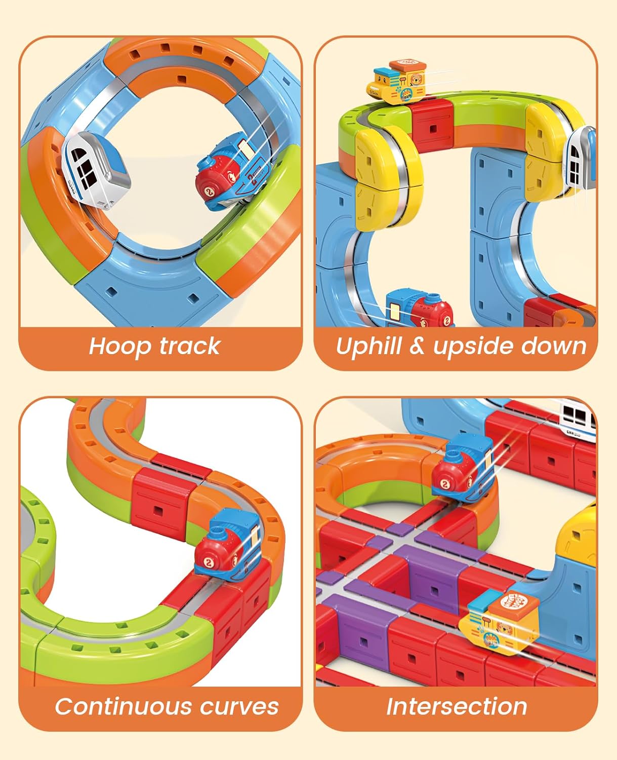 • What You See is What You Get: The number of cube tracks matches the actual count of track pieces—no misleading extras. We guarantee no incorrect traffic signs or unnecessary plastic components.This electric train set includes versatile magnetic track blocks for building straight sections, curves, slopes, and vertical tracks, ensuring exceptional value for your investment.