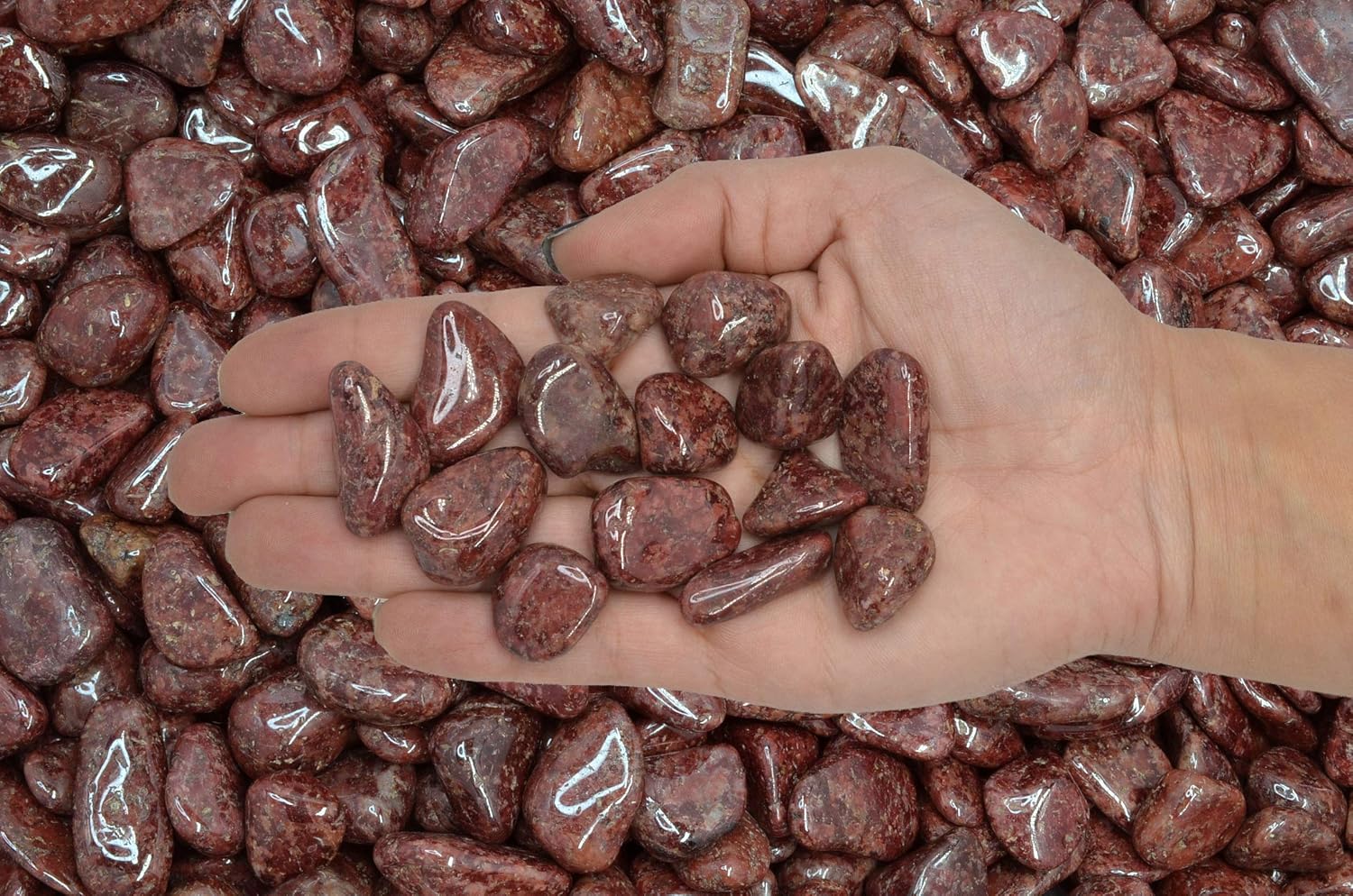 Fantasia is a USA based mining company located in Massillon Ohio. The Fantasia brand of Wine Quartz tumbled stones you are ordering are 100% natural and begin with "A" to "AA" grade rough. These premium rough stones are then tumbled using Fantasia's proprietary tumbling techniques which bring out the naturally beautiful colors, shine, luster and energy in every stone. Your order will contain multiple pieces of these stones with varying natural sizes, shapes and patterns as shown in the images which is equal to or greater than the total weight purchased. In most cases the size of each stone is between 0.75" to 1" each, but it is possible to get some stones smaller or larger than these averages in your order.VERY IMPORTANT: With all tumbled stones there are some material types which will have imperfections even after being meticulously tumbled due to their natural characteristics. While rare, due to the fragile nature of tumbled stones it is also possible minor chipping may be found on some of the stones received. The number of acceptable imperfections is relative to the material type and the grade being purchased and some minor imperfections should be expected as shown in our images.