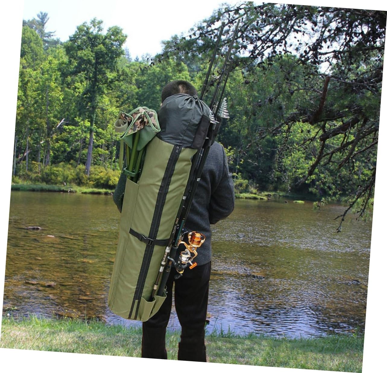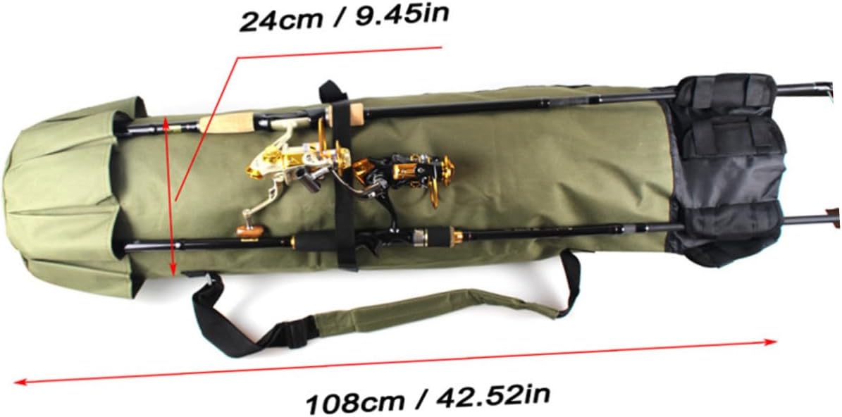 Package List 1 x fishing bag Features - Note: Only Bag Included And Accessories Not Provided Fishing Rod Bag. - Color: Green Fishing Stand Bag. - Material: polyester . - Size: About 108 x x 24cm. - present for outdoor sports lover, specially for fishing enthusiast for their fishing tool storage Fishing Bag. - Middle fixing strap and bottom five small pocket pouch for fishing rod organize, keep them and Bag. - Cylindrical style fishing bag to remain fashion and cool when for outdoor activity Fishing Gear Organizer. - and shoulder strap for comfortable carry Fishing Supplies. - Polyester material, sturdy and , multi-pockets and large capacity.Goods InformationFishing Rod Bag This item is fishing rod bag which is made of polyester cloth material.Club Bag Large capacity and multi-functional use, for both fish tools container bag and travel shoulder bag.Fishing Supplies Anti-wear and great for outdoor activity use.Fishing Gear Organizer Folding design for easy storage when not in use