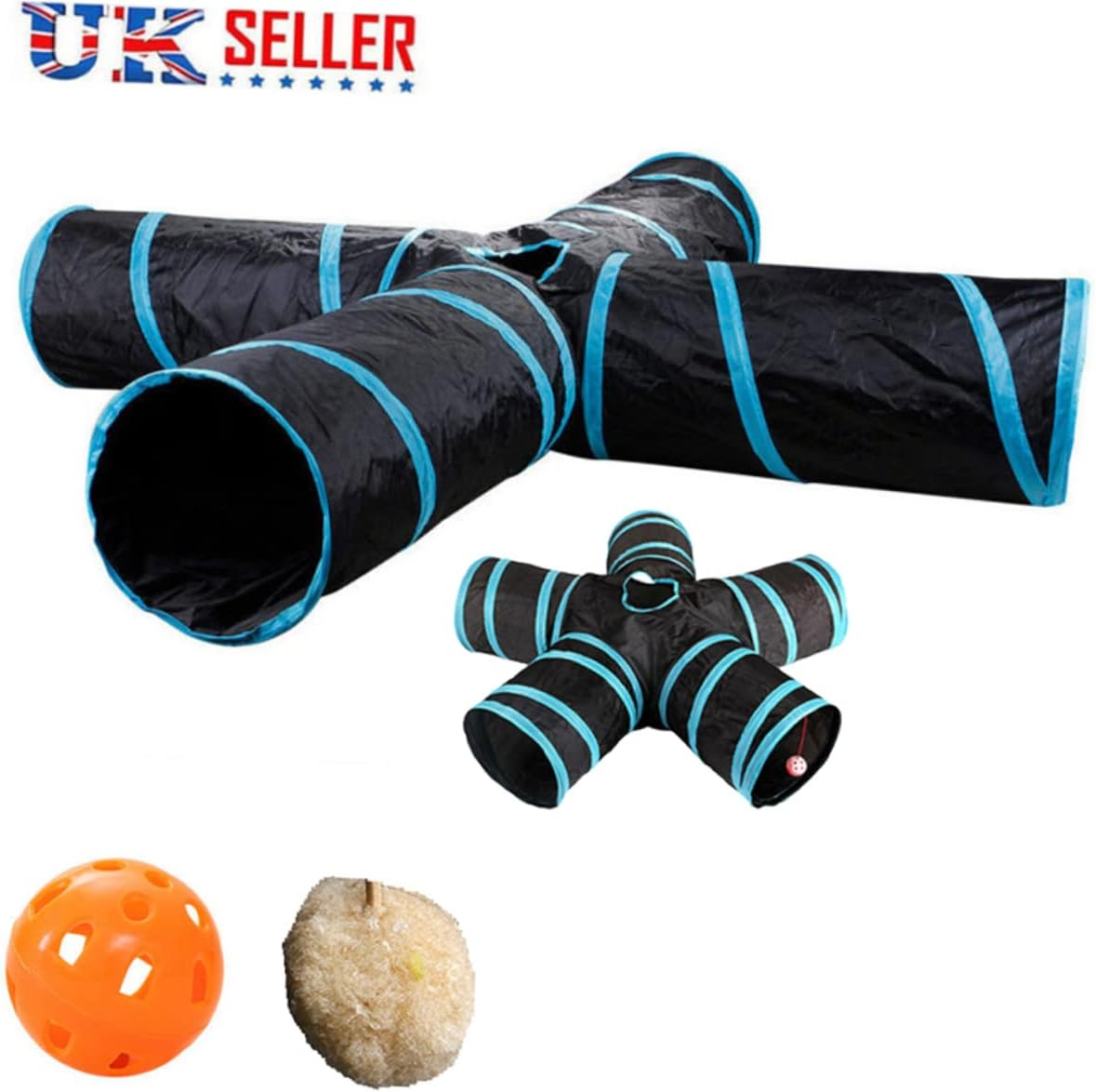 Package List 1 x Square tunnels Features - Color: Blue pet toy - Size: Approx 25 x 25 x 8cm foldable cat tunnel. - Material: Polyester animal tunnel. - Adorable and delicate appearance with unique 4 connected tunnels design Hanging balls with strong ropes inside can lure cats into tunnels hamster tube. - No need too much space There includes a portable storage bag which can store folded tunnels small . - Lined with crinkling paper that your pets will find irresistible They will have hours of fun exploring into and out of the small house pet channel. - hide-out or playing toy for cats, guinea pig, rabbits and so on cat tunnel. - Made from material, it is and for your little pets tunnel.Goods Descriptiontoys Do you want to give your pets better hiding place or more or pounce than other single tunnel? This pet tunnel is . With foldable design, it takes up small space when folded.animal tunnel It is a living and playing product made of tear-resistant polyester material, don't need to worry about your pet scratching the tunnel