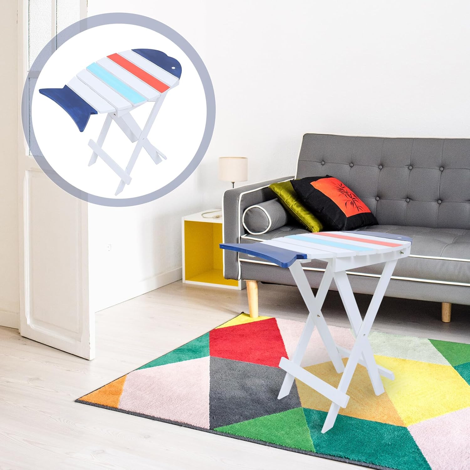 GARVALON Wooden Fish-Shaped Folding Table Portable Snack Tray Table Compact Folding Tv for Indoor Patio Balcony Use