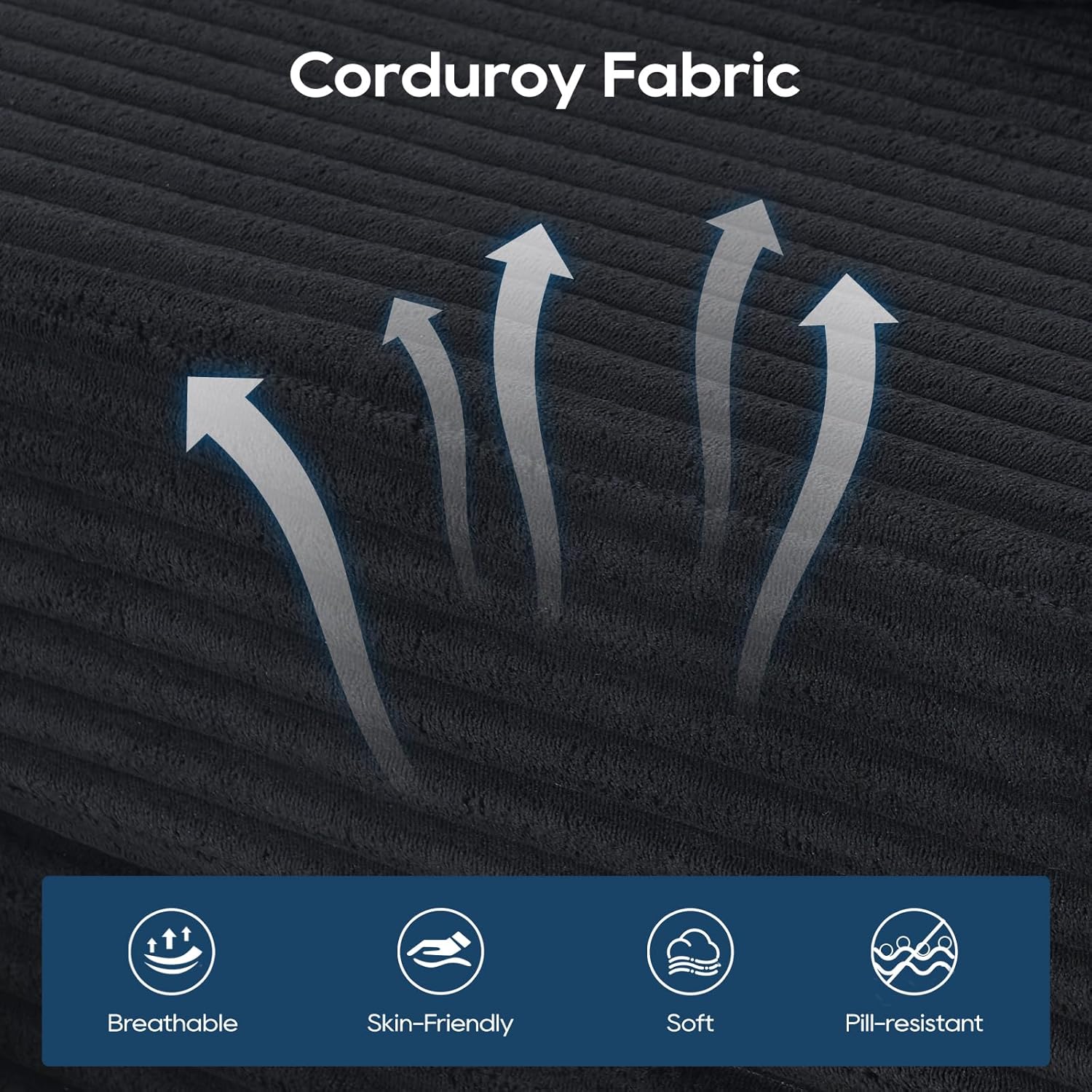 104" L-Shaped Sectional Couches,Convertible Sofa Bed,Corduroy Fabric Compression Sofa,Modular Couch with Memory Foam and Steel Frame for Bedrooms,Home Theater,Living Room,Black Product Information Product Type:Sofa Color:Black Material:Fabric Product Size:104.33”L x 67.32”W x 26.77”H
