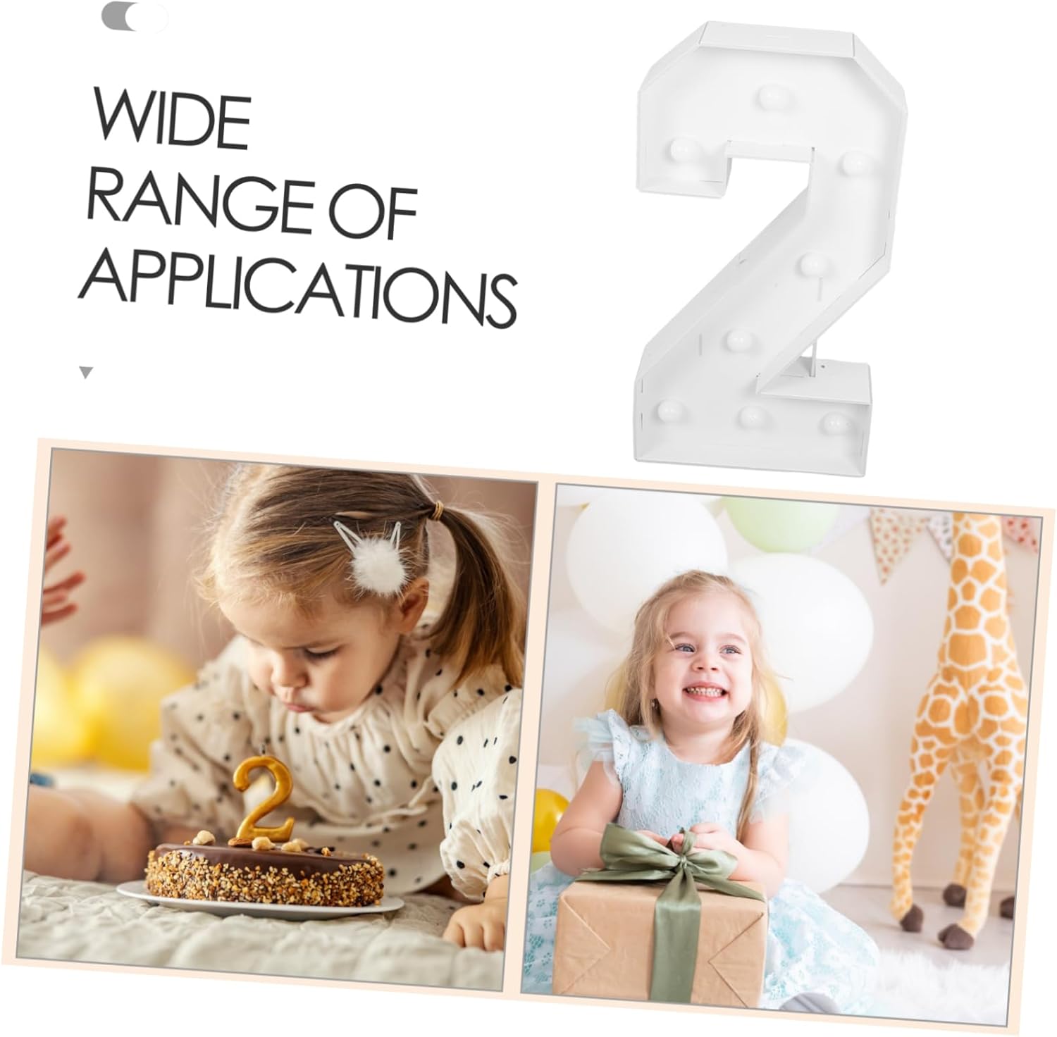 DescriptionCrafted with attention to detail, this light-up number features a sleek and modern design that complements various party themes. The warm illumination enhances the overall decor, making it suitable for both indoor and outdoor celebrations. Its sturdy construction ensures it remains a standout piece throughout the event.Features-Color:White-Material:KT board-Size:71.00X38.00X11.50cm/27.90X14.93X4.52in-Unique number: the distinctive number design enriches the party atmosphere, making the birthday celebration more exciting and memorable-Vivid illumination: bright LED lights create a dazzling effect, contributing to a festive and cheerful environment- Setup: effortless installation process ensures you can quickly and easily decorate your party space-Sturdy construction: crafted from materials, this decoration is built to last and can be used for multiple events-Multipurpose decoration: suitable for a wide range of occasions, including birthday parties, kids' events, and home gatherings, enhancing the overall experience