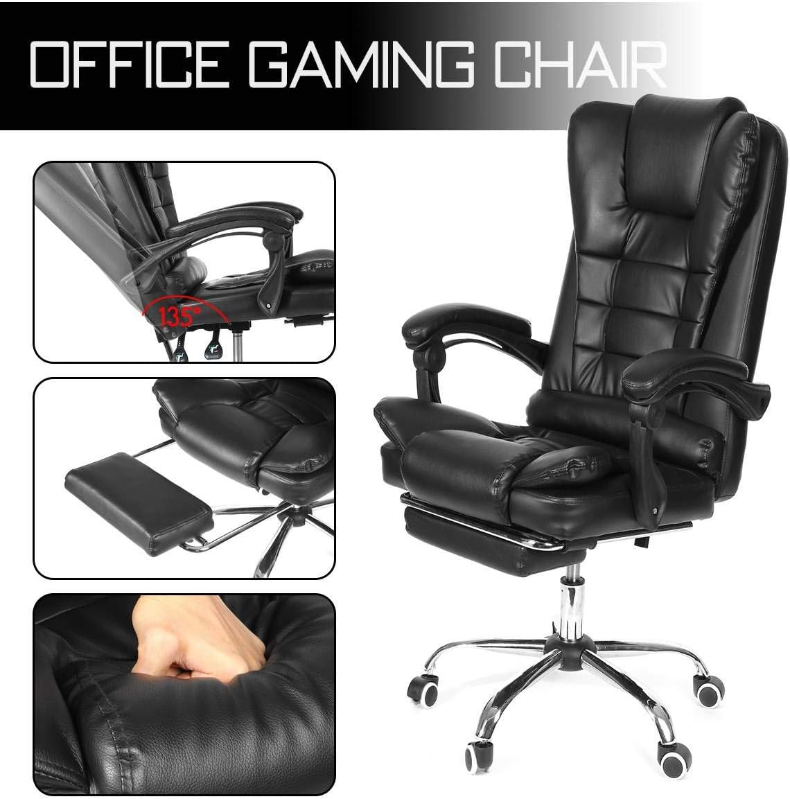 -90°~135°lying design, can be lying down like a bed. -Retractable footrest, make you more relexed during the break. -High quality leather cushion, comfortable sitting, scratch resistant. -5 claw universal wheel, large bearing and much mute. -360° freely rotatable. -Height adjustable, to fit different people's height. Classic Design-Ergonomically designed gaming chair with classic appearance and suitable size, is widely used for intense gaming sessions, home relaxing or working for long hours. Product Name: Gaming Office Chair Color: Black Material: PVC(polyvinyl chloride)Leather + Elastic Fabric + Plating Feet Max. Load Bearing: 150kg Package Includes: 1 x Gaming Chair (You need to assemble it by yourself ! ) Note: *Due to the difference between different monitors, the pictures may not reflect the actual color of the item. *Compare the detail sizes with yours, please allow 1-3cm error, due to manual measurement. Thanks for your understandings.