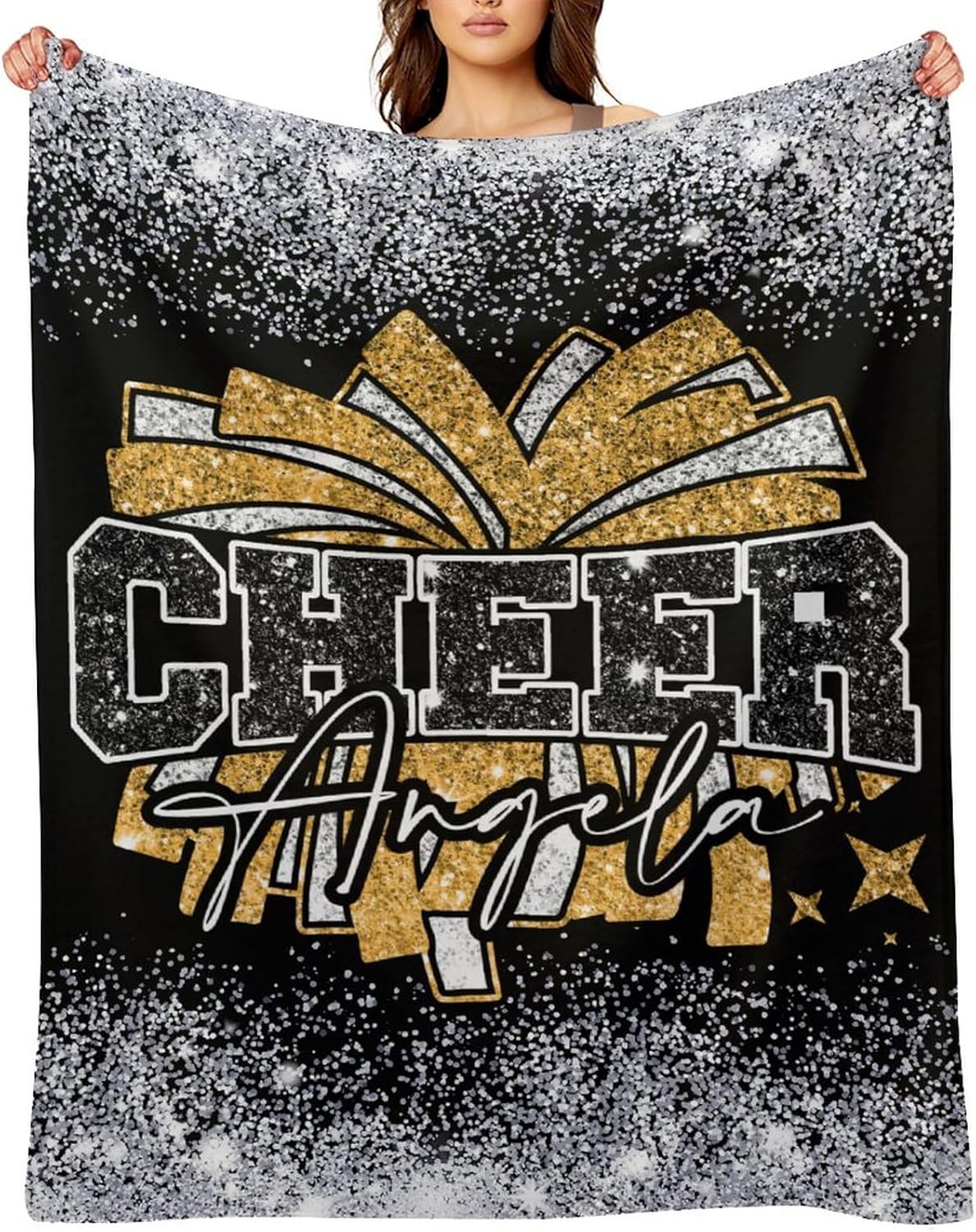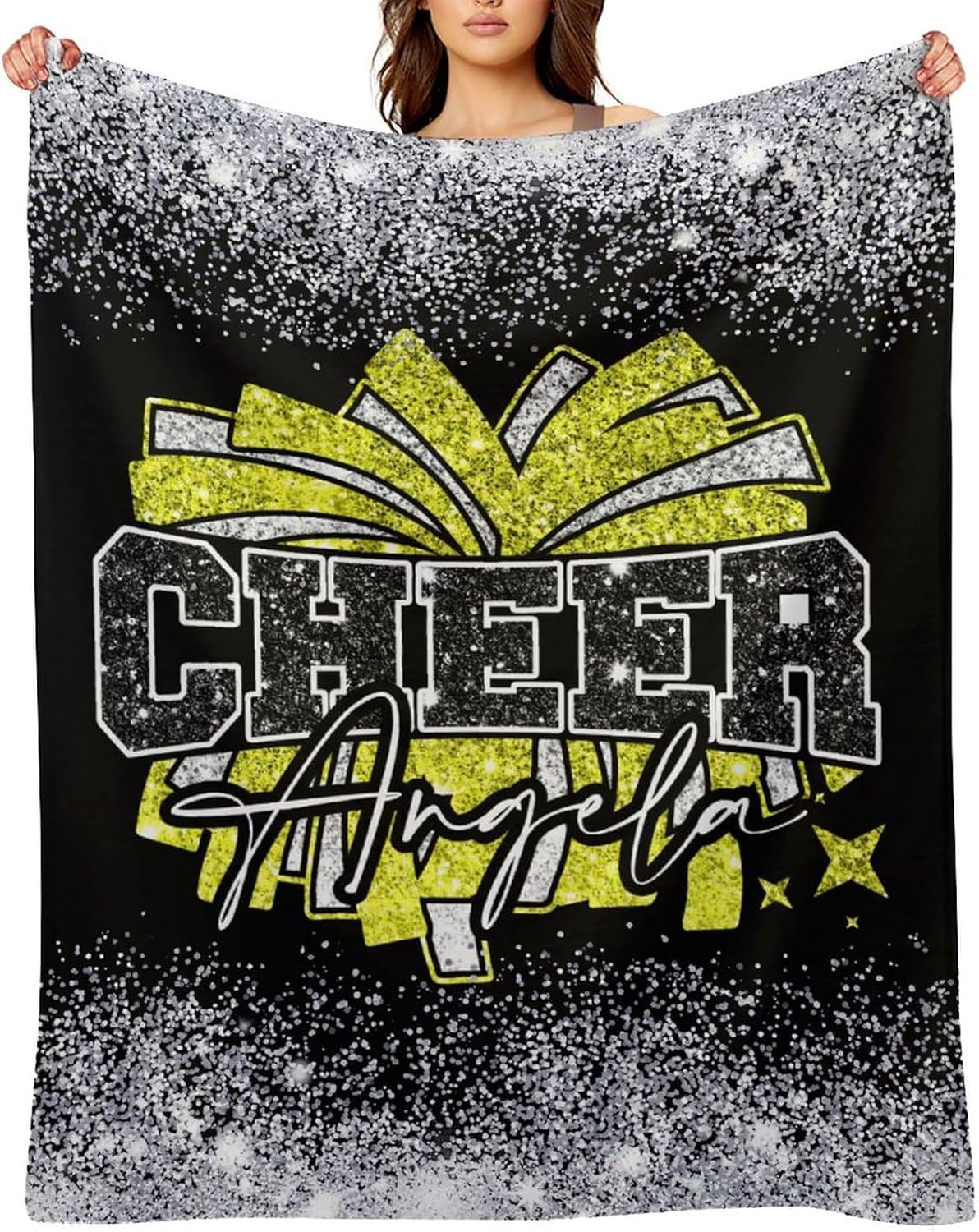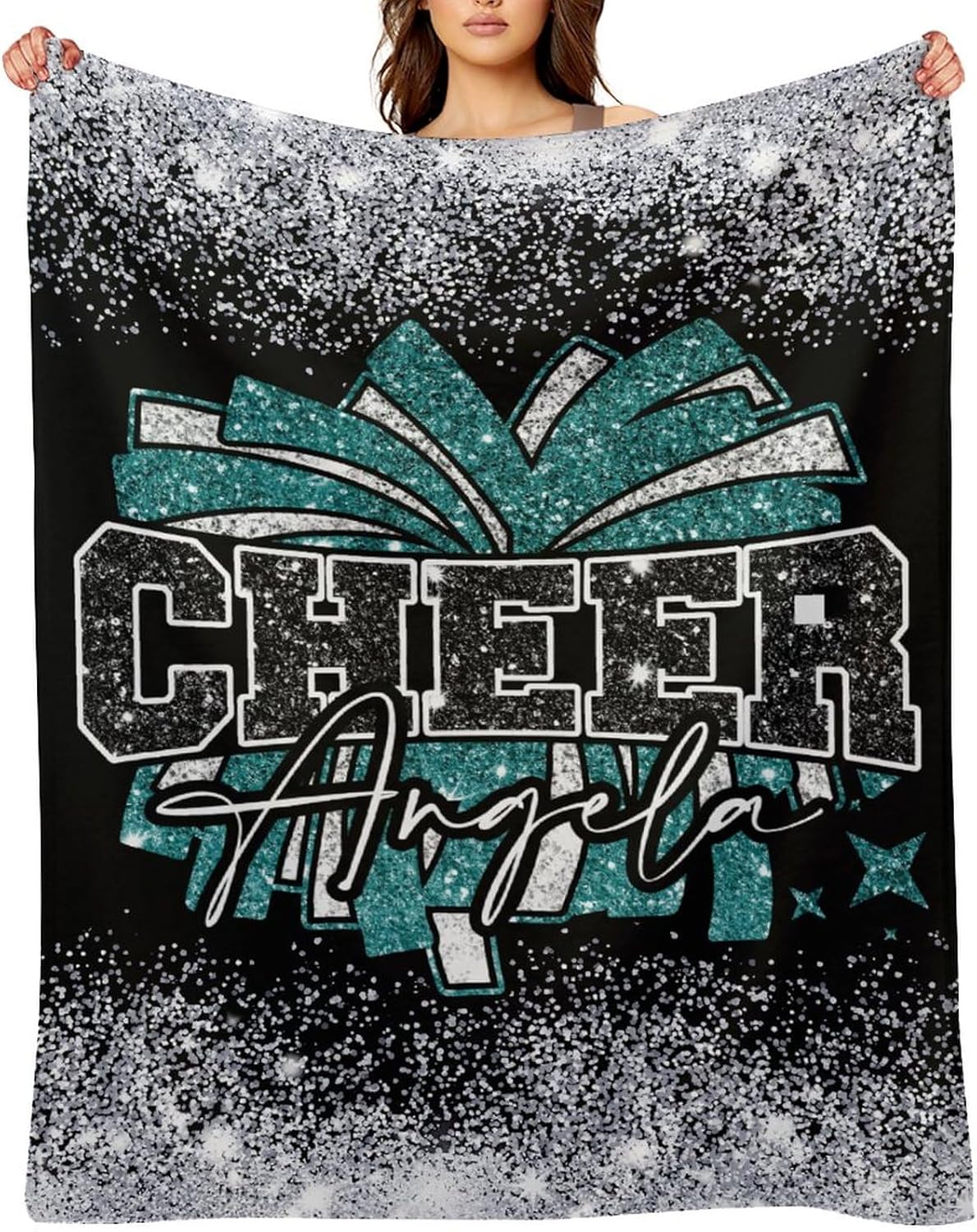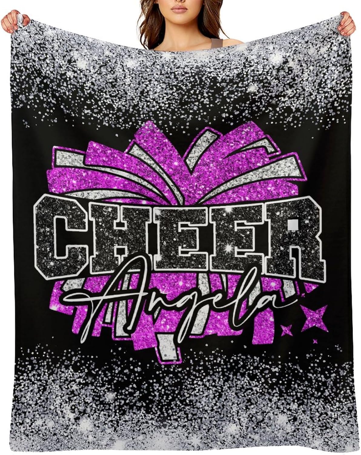 Make a unique custom personalized cheer blanket just for you! Personalized Blanket with Custom Cheerleader Name is the Best Gift for Cheerleading Family or Friends Birthday, Anniversary, Thanksgiving, Christmas, New Year, School Starts ! Five reasons to choose us1. This personalized fleece cheer coach blanket is warm and comfortable, suit for all seasons, provide continuous warmth throughout the year, and prevents body from getting cold ! 2. Personalized blankets with premium craftsmanship and charming cheer girl pom star bow design, makes an good birthday gift,they will love and use every day !3. The soft and skin-friendly custom blanket is light weight, easy to store and carry, it's an ideal present for travel and backpacking. 4. Possess the characteristics of no lint, no fading, no wrinkle, no ball, machine-washable blanket only gets softer with each wash !5.Our every item is made with high-quality materials, outstanding designs and affordable prices. We will work harder to bring customers better and better products !Cheerleading Blanket Washing instructions: Please wash the personalized blanket with cold water and clothes of the like colors. For best results, you'd better ventilate it to dryWarm Tips: This size data is measured under the clothes flat, due to the different measurement methods, the error within 1-3cm is a normal phenomenonColor may be light different due to monitorAny bling glitter spark sequin is a printed effect, which also makes our cheer blanket more practical and durable If you have any questions, please feel free to email us