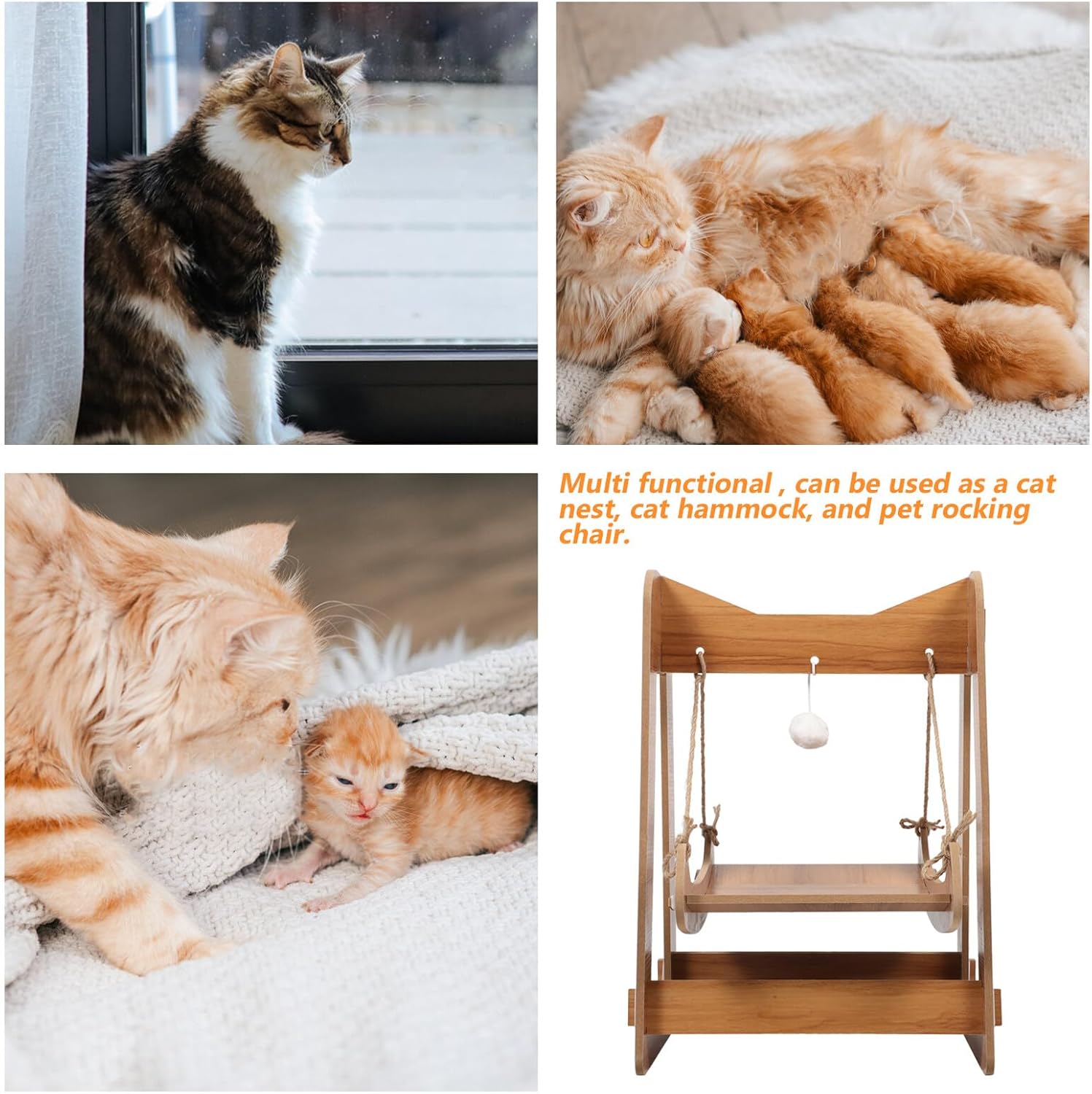 Package List 1 x Cat Hammock Characteristics -Color:Beige -Size:49.20X37.40X29.40cm/19.34X14.70X11.55in -Product Info:Solid wood cat nest -Material:Wood, jute rope -Suitable for cats of most sizes, this versatile lotus shaped cat bed can be used in wide range of applications. -The structure not only adds sophistication to decor, also creates secure place for cat to relax Cat Bed for Resting. -This wooden floor cat hammock can provide enough space for your pet to sleep and play pet comfortable nest. - Safe and convenient to use, not easy to break or deform, reusable and can be applied for longtime hanging cat hammock. -The floor type cat hammock is cozy and breathable, the cat will love lying on it. small pet hammockGoods Informationpet swing Its multi-functional style allows you to use it in different ways, providing your cat with more options for entertainment and relaxation.hanging cat hammock This cat swing bed is not only a cat bed but also a cat hammock and a pet rocking chair