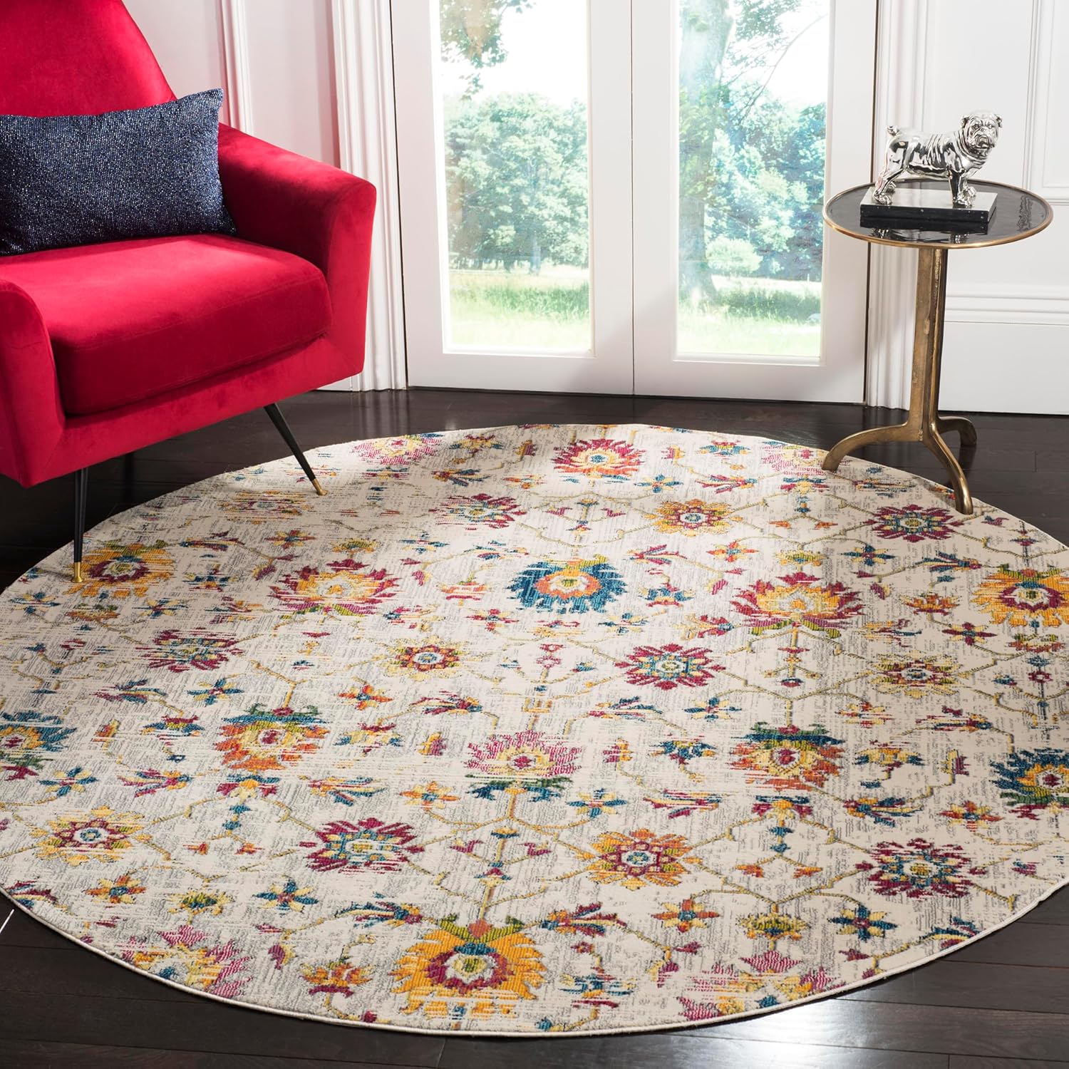 Ornate traditional motifs are distressed and modernized by illuminating color-ways in SAFAVIEH’s Merlot Collection. These area rugs are full of character and bohemian flair that are guaranteed to brighten and liven up any living space. A low pile height allows for a range of decorating options, and its power-loomed construction ensures a sturdy foundation. Rug sizes may vary slightly.
