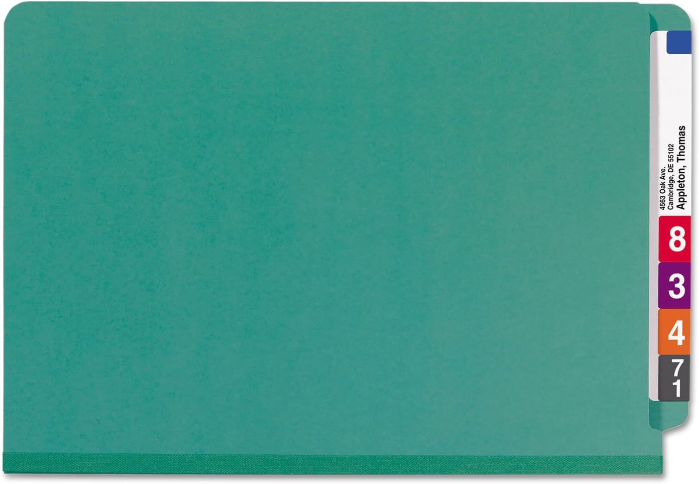 Minimize the time you spend searching for documents and increase the efficiency of your shelf filing system. Smead’s End Tab Pressboard Classification File Folders with SafeSHIELD Fasteners and 2 dividers make it easy to organize your critical information by providing 6 different filing surfaces that can be used to separate your documents in subcategories and keep them in proper sequence. Purposefully designed to provide a solution for the most common fastener issues, our SafeSHIELD Coated Fasteners help you avoid hand injuries, ripped papers and excessive fastener crinkling. The 2” expanding gusset made of tear resistant material offers greater storage capacity for bulky projects. For additional convenient document storage, consider applying one of our Poly File Retention Jackets (68191 - sold separately) to add documents without punching them. Proudly made in the USA, these 25 pt. heavy pressboard file folders contain 100% recycled content, 30% post-consumer material and are SFI Sourcing Certified. Available in letter or legal size and assorted colors to make color coding your files easy.
