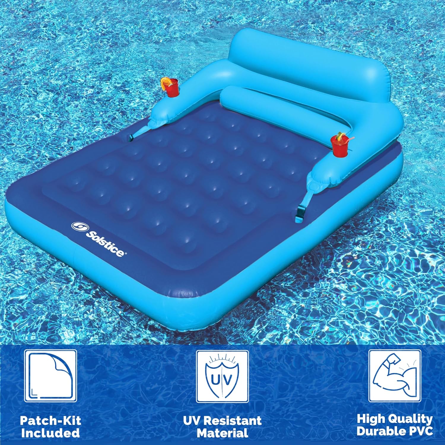 Enjoy the ultimate in water-based relaxation with this premium inflatable lounger, designed for comfort, durability, and effortless fun. Whether drifting across the pool, floating on a calm lake, or soaking up the sun at the beach, this float transforms any aquatic setting into a serene escape. Crafted from durable, UV-resistant vinyl, the lounger resists fading, punctures, and wear, offering long-lasting performance across countless sunny days. It’s easy to inflate, deflate, wipe clean, and store, making it perfect for spontaneous use or planned getaways. A patch kit is included for added peace of mind. Built for comfort, the lounger features a buoyant base that keeps you elevated above the water while providing excellent support. The shape is designed to encourage full-body relaxation—whether lying back with a book, sunbathing, or chatting with a friend. Ribbed or scooped contours offer a soft, secure resting surface that stays comfortable for hours on the water. Generous space allows for easy lounging without feeling cramped, making it ideal for enjoying time solo or sharing the float with others. Thoughtful features such as integrated cup holders and supportive backrests let you stay refreshed and fully relaxed without ever needing to get out of the water. Quick setup ensures you’re ready to float in minutes, and the lightweight design means it packs down easily for transport or off-season storage. Whether heading to a resort, campsite, or backyard pool, this inflatable raft fits conveniently into trunks, beach bags, or RV compartments. Combining style with comfort and versatility, this lounger is the perfect companion for long, lazy afternoons under the sun. Simply inflate, settle in, and let the water carry your stress away—an essential for anyone seeking comfort, connection, and calm on the water.
