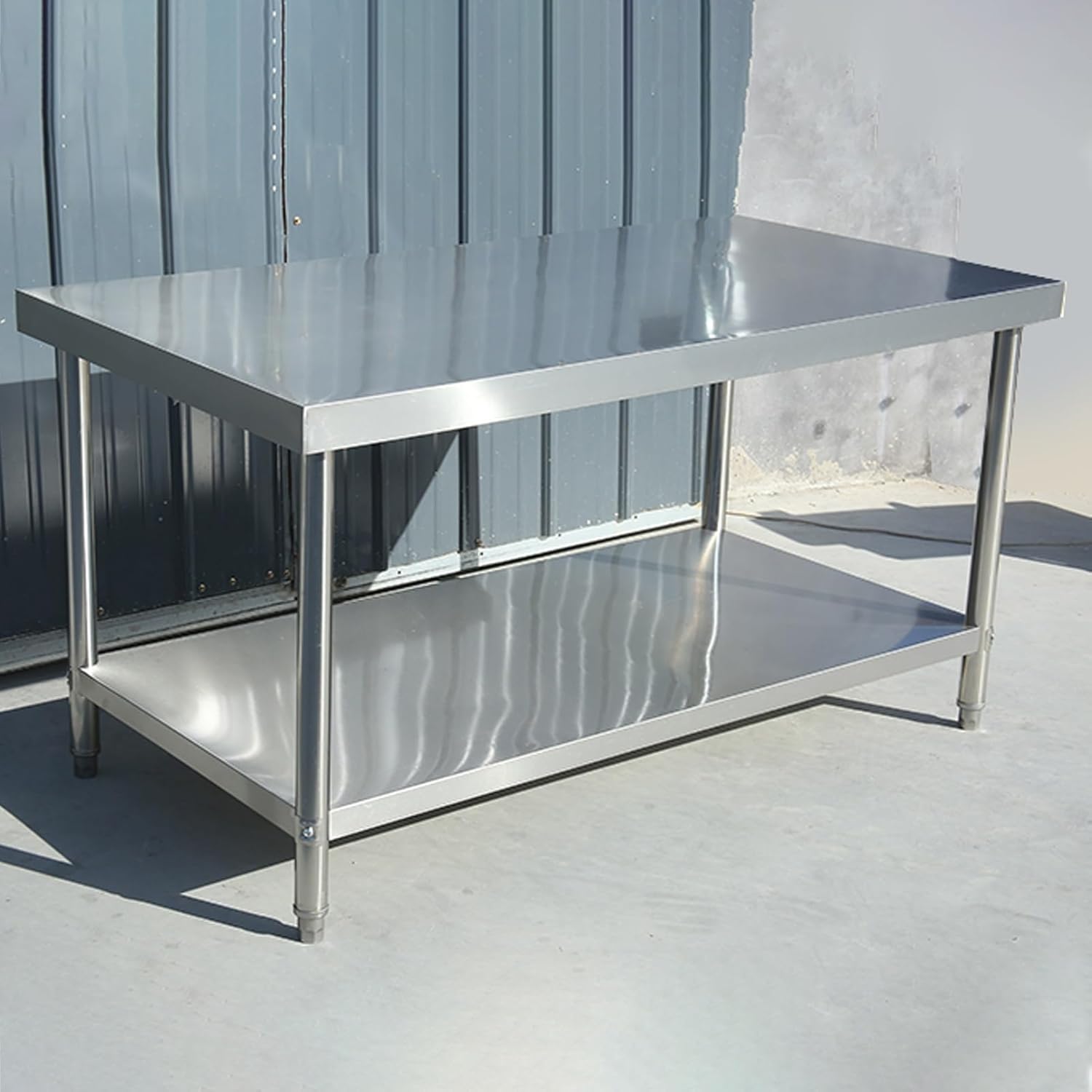 Transform your culinary space with our YUGXTH stainless steel work table that blends functionality with elegance!To make your prep time more efficient, the stainless steel table for prep tabletop and undershelf are made of high-quality stainless steel which is scratch-resistant and easy-to-clean.Product parameters:Product name: Stainless Steel Prep Table, Commercial Kitchen Table, Heavy Duty Prep Worktable, Stainless steel kitchen worktop, Stainless Steel Table for PrepMaterial: Stainless steelProduct color: SilverBase type: LegsSize: 80x60x80cm , 100x60x80cm , 120x60x80cm , 120x70x80cm , 120x80x80cm , 150x60x80cm , 150x70x80cm , 150x80x80cmSuitable for various environments: hotel/kitchen/restaurant/workshopAssembly required: yesPacking list:Kitchen preparation table x 1Notes:1. Since this product is made of stainless steel, please wear gloves when installing.2. Surface film is designed to resist scratching and can be easily removed by heating3. Please allow a slight deviation of 1-3 cm for the measurement data. Thank you for your understanding.