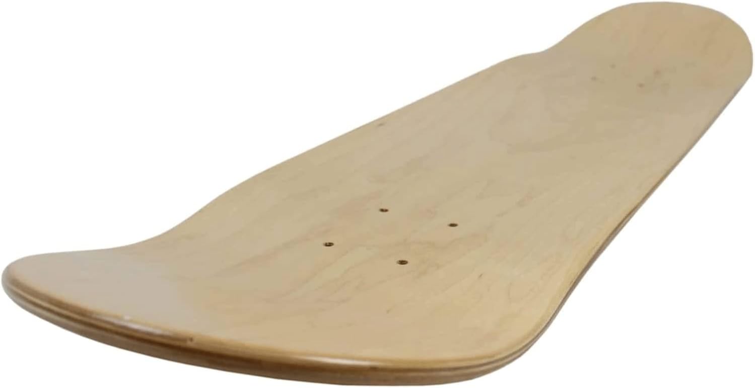 Traditional 7-Ply Construction. The most common skateboard construction consists of seven layers of maple wood veneer, which are pressed and glued together with strong adhesive. Maple is a dense hard wood that provides excellent strength and pop, making it the tried and true standard for decades. Moose decks feature a modern shape. Full of pop, Moose boards have a mellow concave with steep kicks. The perfect combination of flex, stiffness, strength, and lightness. Moose decks come in a variety of sizes from 7.25” to 9.0”. There are no hard rules on what size skateboard should be ridden. We recommend a small size deck (7.25”) for people with shoe size 6 and under. Full size skateboards (7.5” – 9.0”) are recommended for skaters 13 and older. The most common size boards right now are 8.0” or 8.25”. This a high quality skateboard deck that is simply devoid of graphics or artwork. This is not necessarily a lower quality deck than the average “pro” deck, it’s cheaper because the lack of graphics make the boards easier to produce efficiently. The savings is passed along to the consumer. Blank skateboard decks are especially attractive to artists or skaters that want to create their own graphics. This blank skateboard deck is essentially a blank canvas that is ready to be painted.