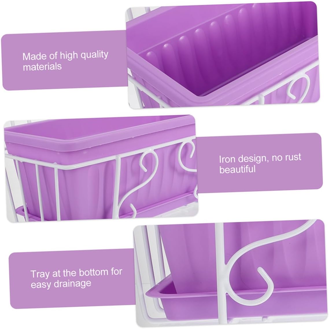 Package List 1 x Windowsill Box 1 x Drip Tray 1 x Planter Rack Features - Color: Purple -Material:Plastic and iron - Size: 46.00X21.00X18.00cm/18.08X8.25X7.07in -Product Info:Rectangular hanging flower pot - This vegetable growing pot is widely used in patio, garden, porch or other indoor and outdoor occasions plastic window planter. - The plastic and iron material makes sure that the planter pot have durability and practicability. - With the drainage design at the bottom, it makes your plant and vegetables better to breathe flower planting pot. - Great for garden, porch, patio and home decor. Add a touch of vivid and natural style. Grow the plant by yourself, and light up your living space vegetable growing pot. - This planting pot is great for planting flowers, vegetable, succulents and anything you like flower pot.Goods Informationplastic flower pots This plant pot is a good choice for you.vegetable planter Are you looking for a professional growing plant pot? Are you in search of a sturdy, trustworthy growing plant pot set that can do multiple jobs at once? , ! Our professional growing plant pot with saucer must meet your needs