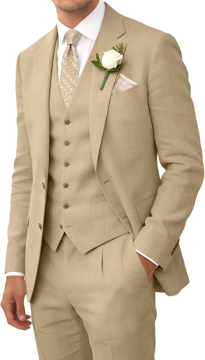 | Occasion Type | business casual outfits for men, linen suit for men, mens linen suit, mens suits classic fit 2 piece, summer beach wedding suit for men |