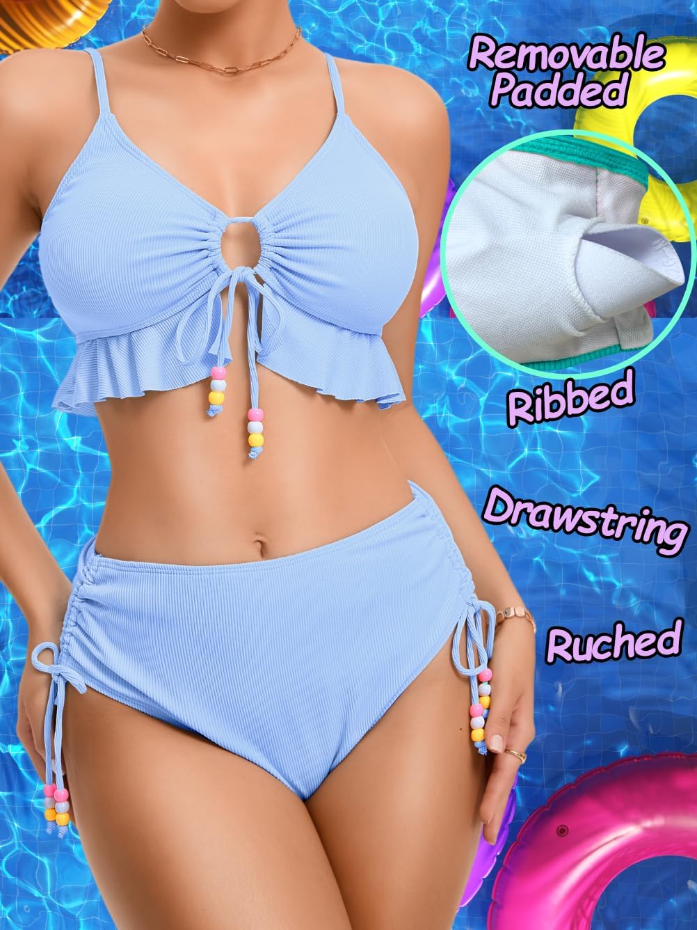 #Q&A: Q: Is it see-through when wet? A: No, it isn't. Q: Does it provide moderate coverage for the bottom? A: Yes, it does. Q: Is this material comfortable? A: Yes, this swimsuit is made of lightweight and breathable fabric. Skin friendly. Q: Is the fabric stretchy? A: Yes, it's. Q: Does the color fade with time after multiple washings? A: The material is high quality. So it would not fade. Q: How many items are included in the product? A: It comes with 1X bikini top, 1X bikini bottom. #Washing Instructions: Hand Wash Only.